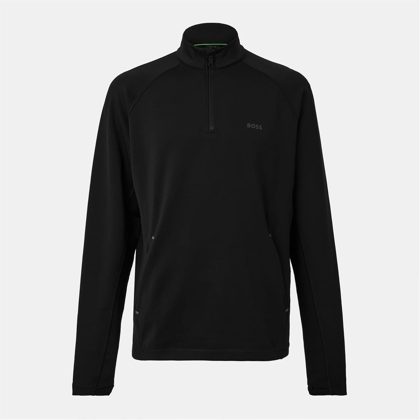 This Boss top is a perfect addition to your activewear collection. Featuring a quarter zipper closure and a zip neck, it offers a modern look. The long raglan sleeves provide comfort and flexibility, while the regular fit ensures a classic silhouette. The solid pattern is complemented by a subtle logo embellishment, making it a stylish choice for any occasion.