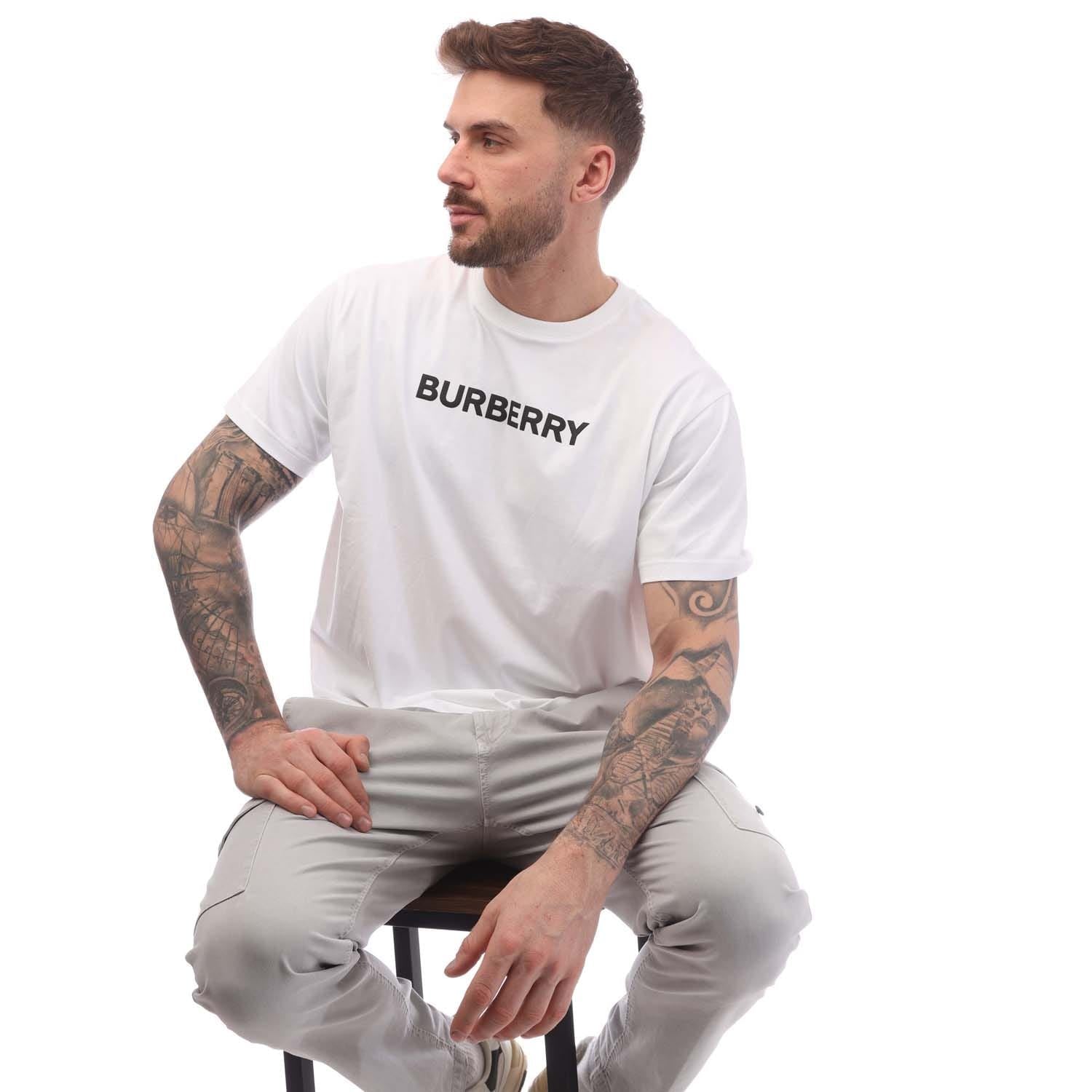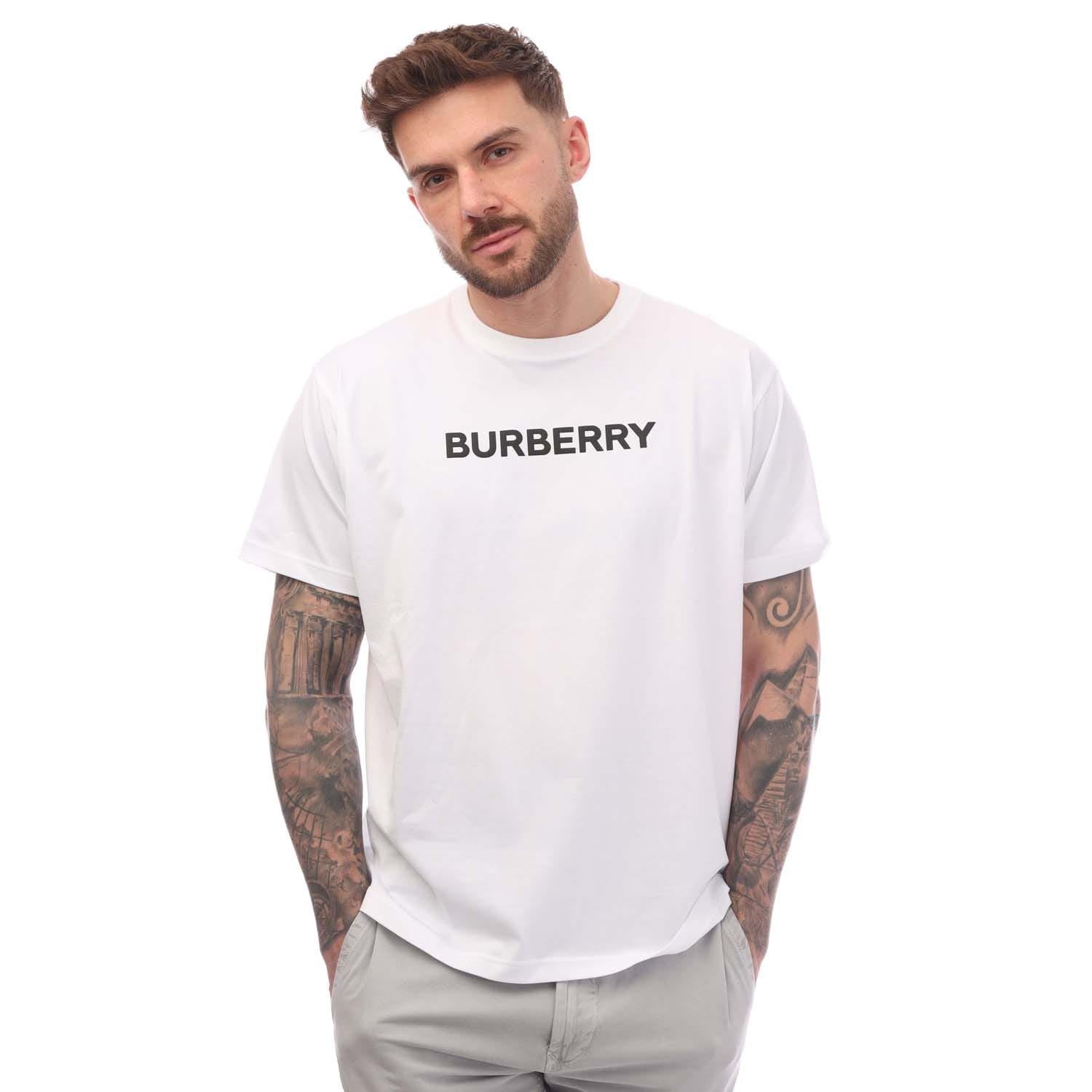 Mens Burberry Harriston Logo Print T- Shirt in white.