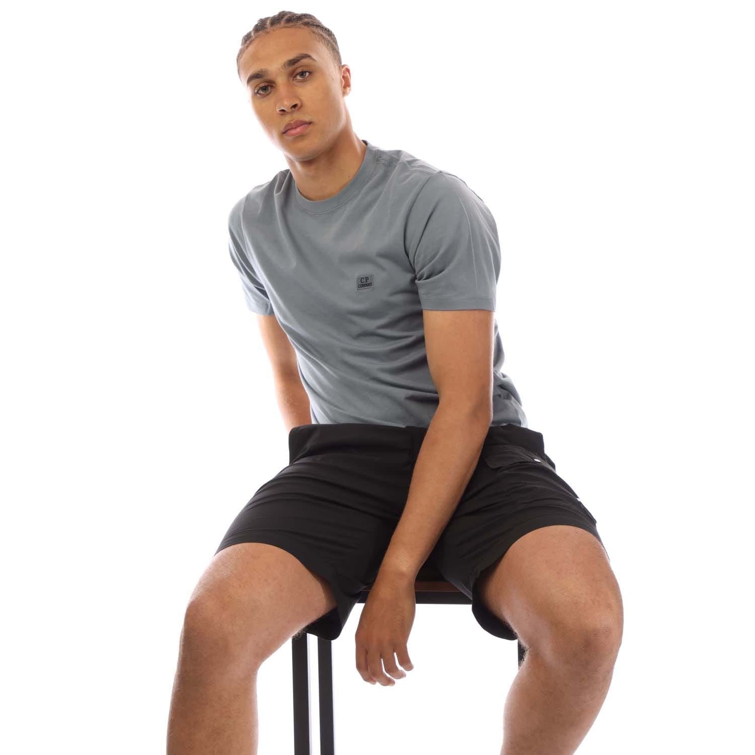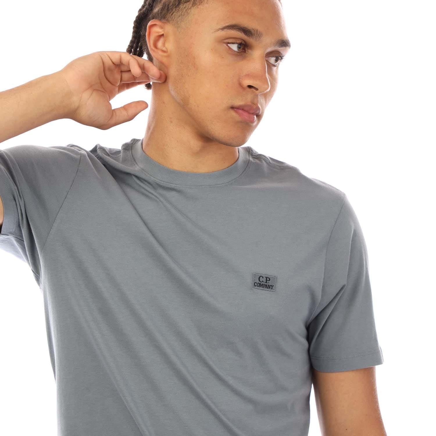 Mens C.P. Company 30-1 Jersey Logo Patch T- Shirt in blue.
