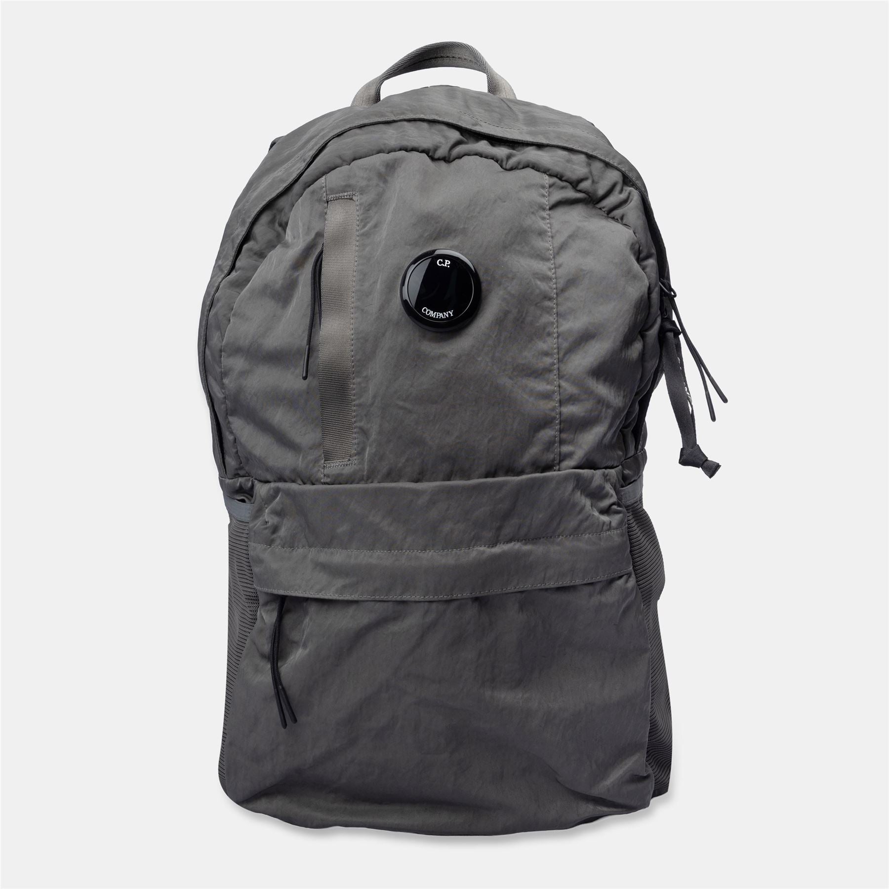Includes a main zip compartment front pocket side mesh compartments and an internal snap pocket. Adjustable straps buckles padded shoulder straps and a carry handle. Hidden zip pocket with the signature C.P. Company lens detail. Dimensions are approximately 45cm H x 31cm W x 13cm D.