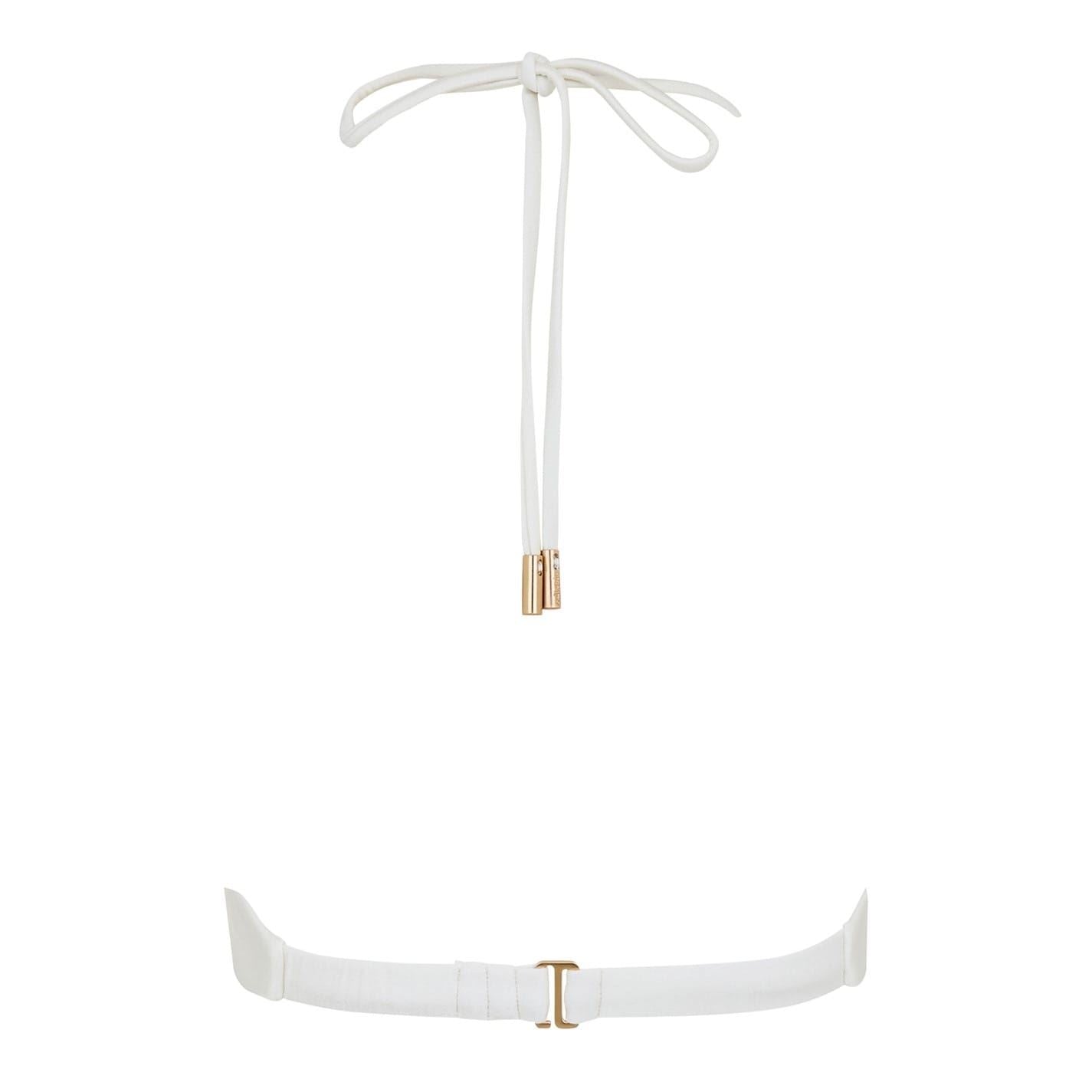 Discover the Cult Gaia swimwear collection with this elegant bikini swim top. Designed for beach outings, it features a stylish tie and clip closure for a secure fit. Perfect for those seeking a blend of fashion and functionality in their swimwear.