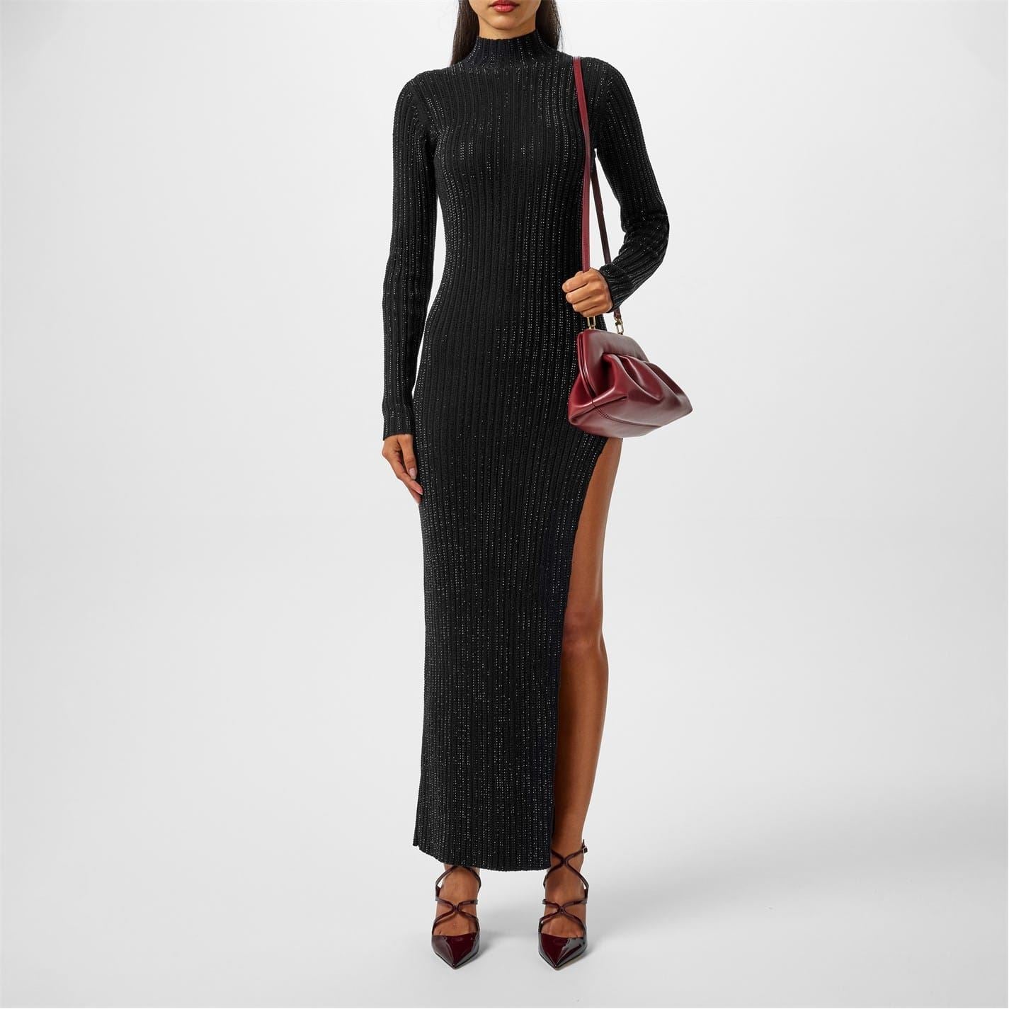 Dazzle and shine in the exquisite Crystal Embellished Maxi Dress by David Koma. Crafted in a sophisticated monochromatic colourway, this striking piece features a daring side split for a sultry touch. The fitted, high-neck design ensures you make a stylish entrance at fashion-forward events and special occasions, enveloping you in luxurious warmth and elegance.