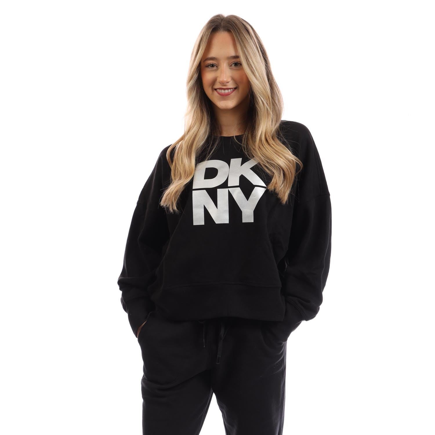 Womens DKNY Foil Logo Crew Neck Sweat in black silver.