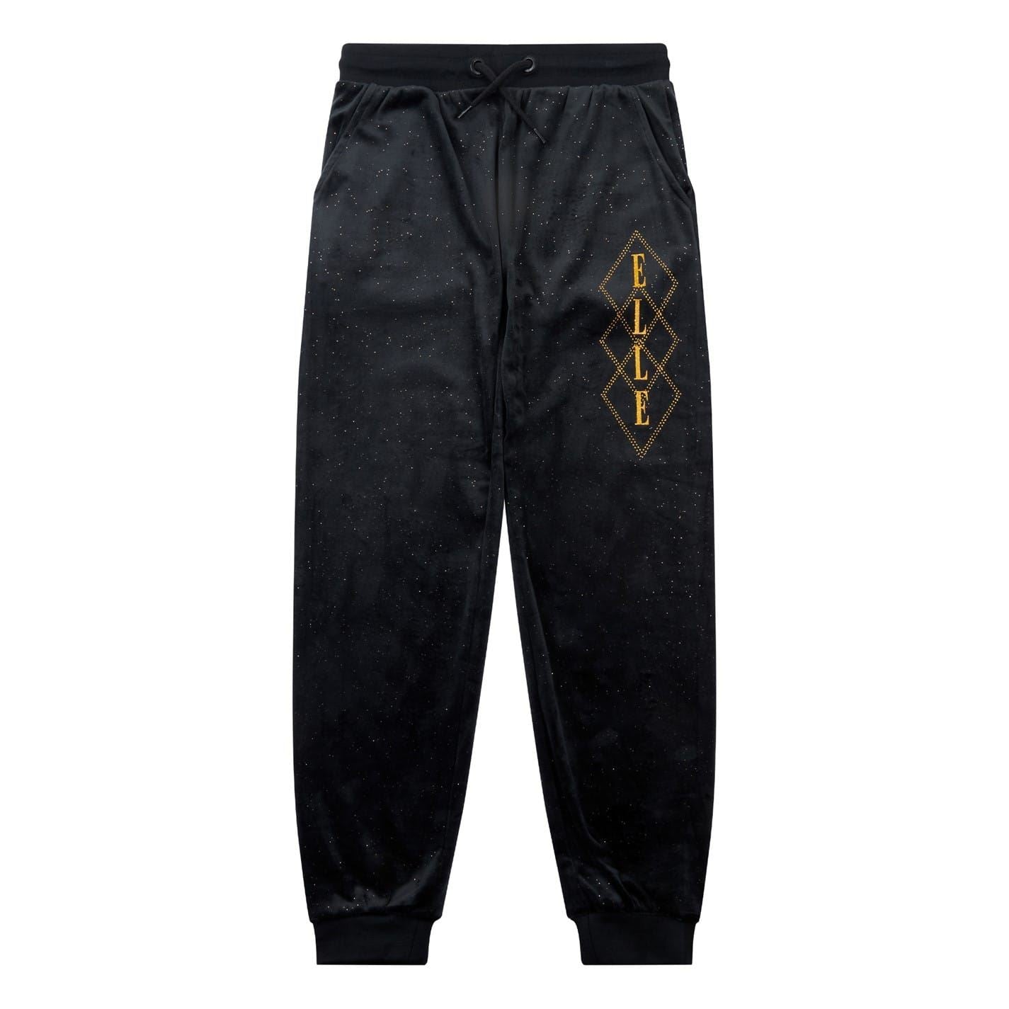 Elle joggers feature a drawstring closure and regular fit, offering comfort and style. Adorned with a logo and glitter embellishments, these joggers also showcase distinctive lettering graphics, making them a standout piece in any casual collection.