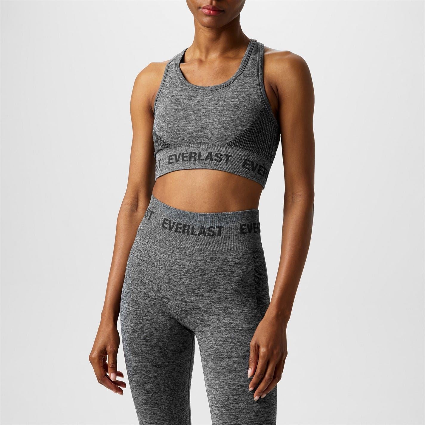 Elevate your workout with the Everlast sports bra, designed for activewear enthusiasts. This sleeveless, heathered top features a scoop neck and racerback style for optimal support and flexibility. With a snug fit and cropped length, it ensures comfort and style during any sporting activity.