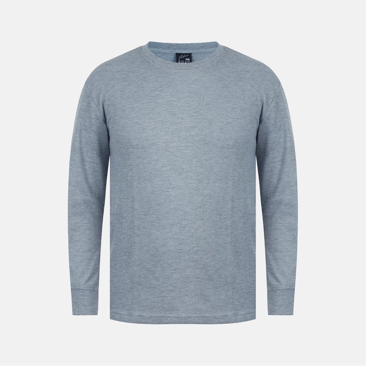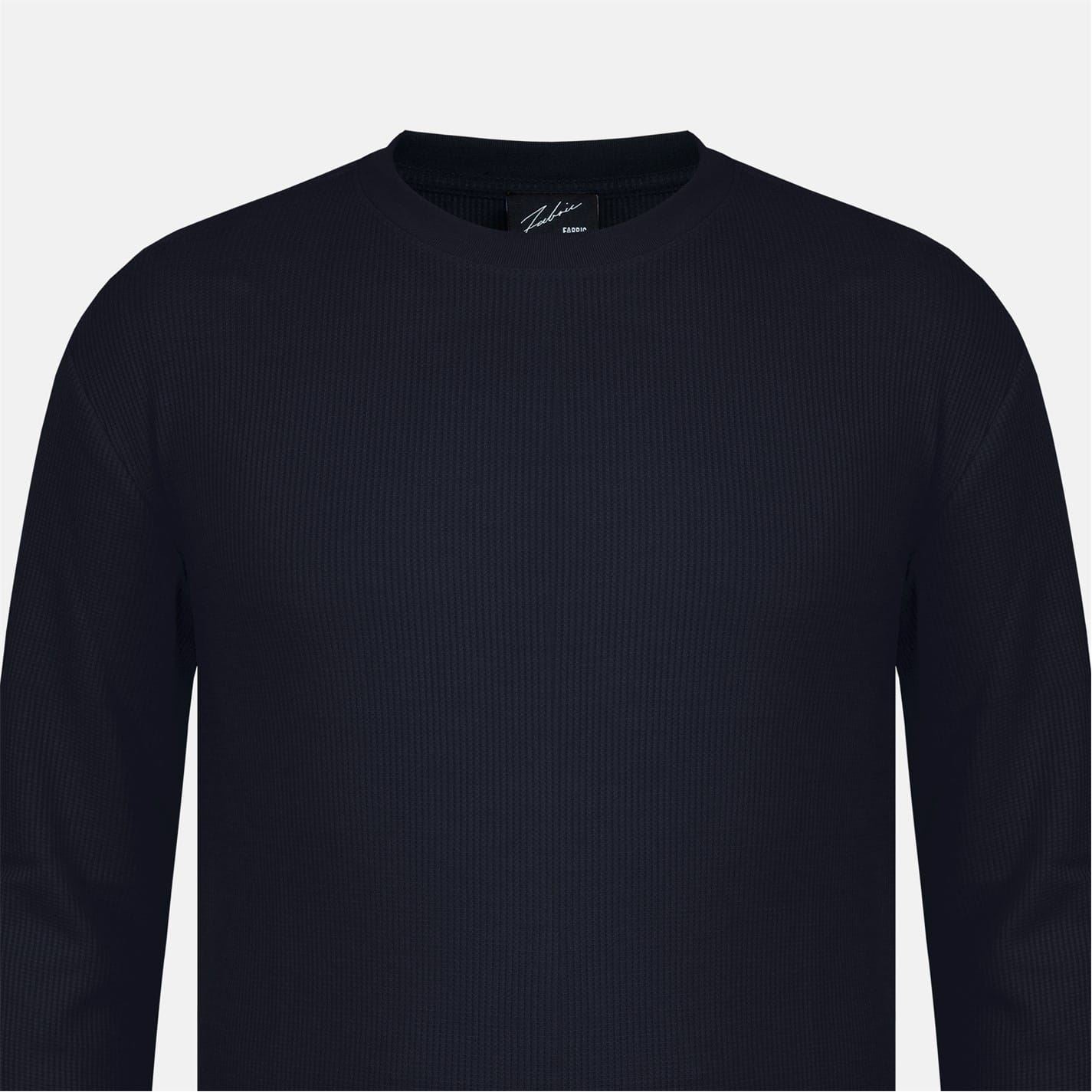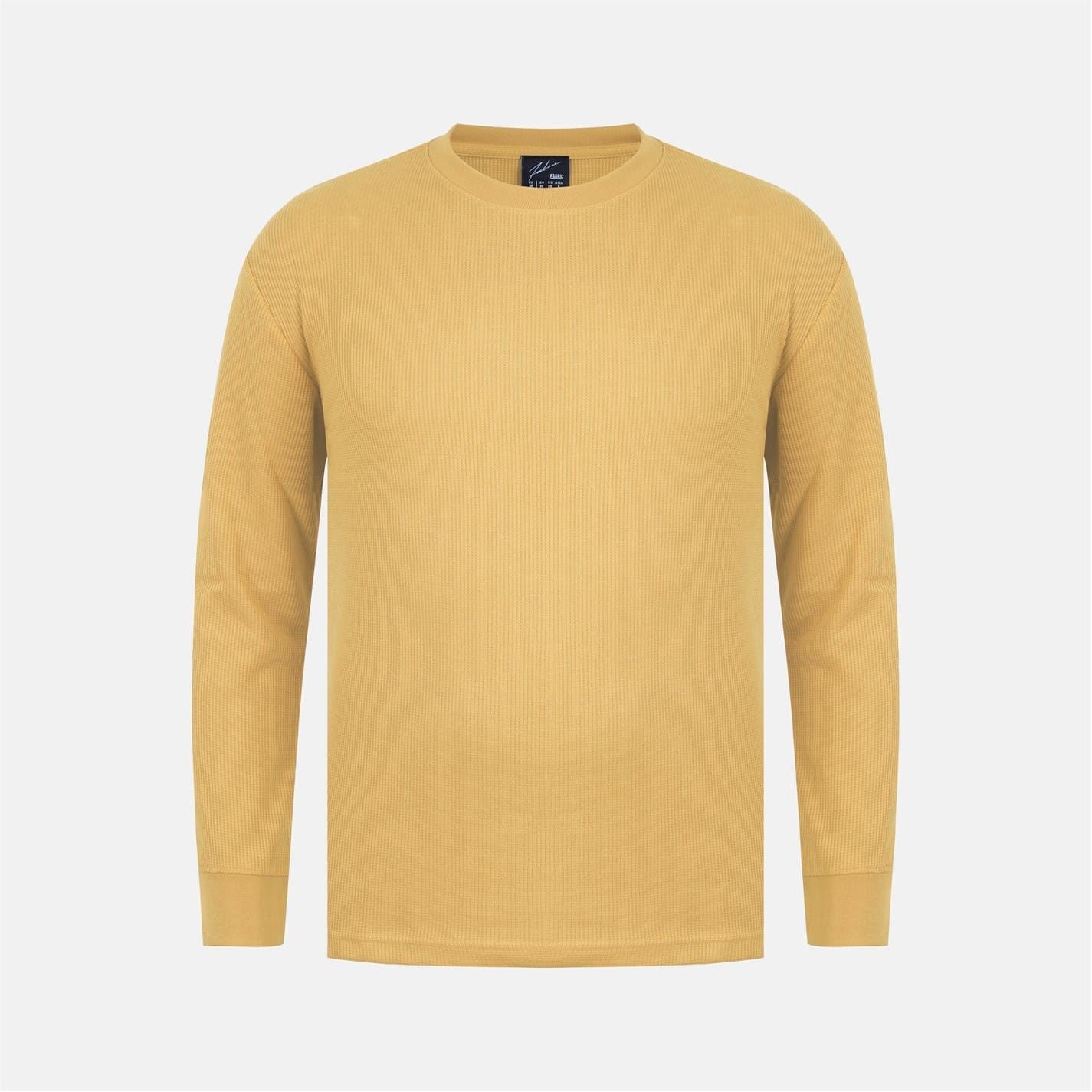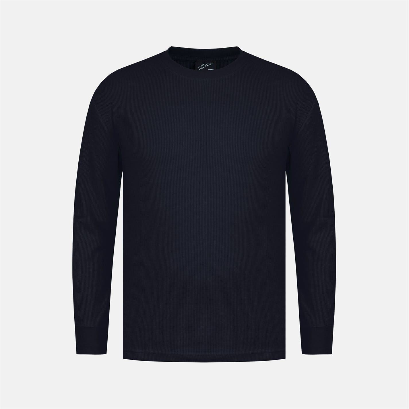 Fabric Waffle Crew Neck Long Sleeve T-Shirt