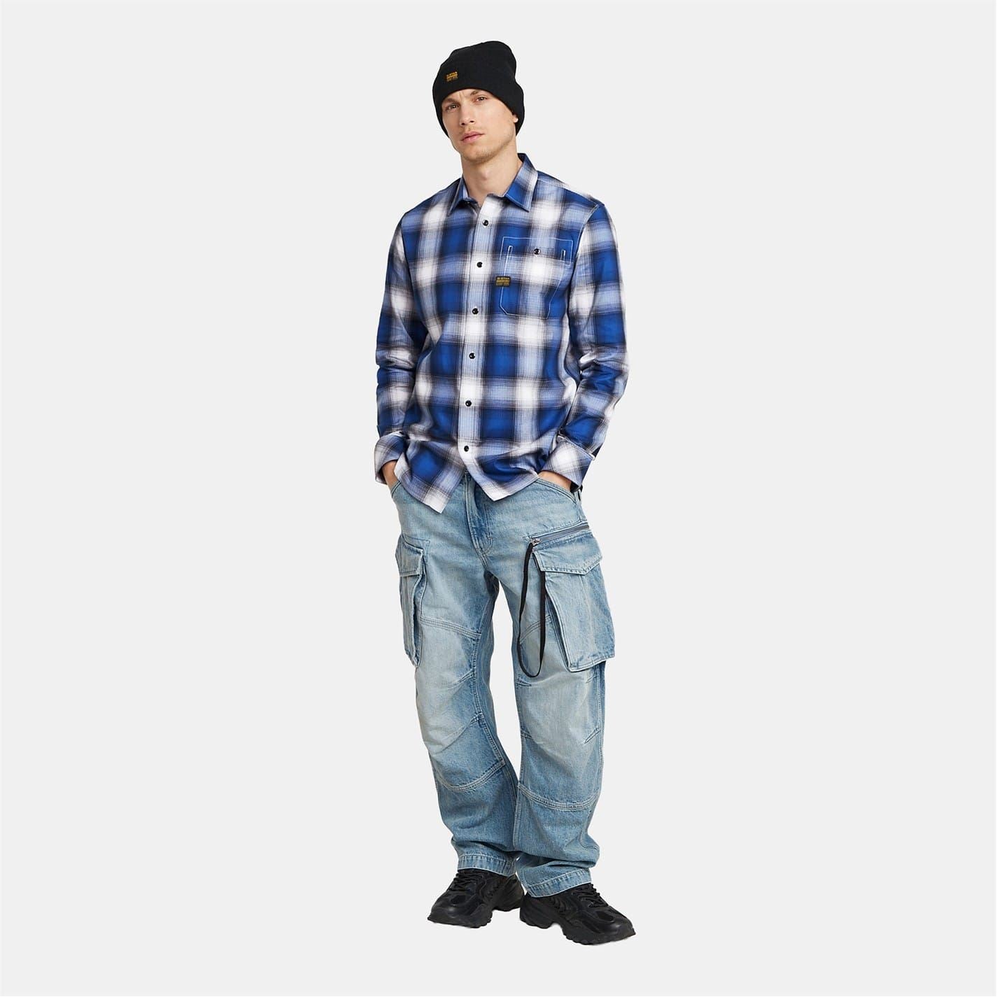 This G-Star top features a plaid pattern with long shirt sleeves and a regular fit. It includes a front button closure and a shirt collar with barrel cuffs. The design is enhanced by a pocket and a logo badge, adding a touch of distinction to the overall look.