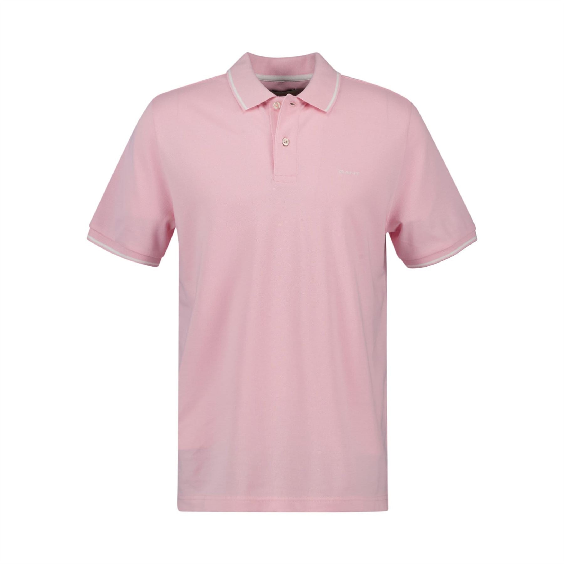 Crafted from 100% cotton in a soft piqué texture this GANT polo shirt is cut for a regular fit. It is designed with short sleeves a flat knit collar and a two button placket. This polo shirt features tipping on the cuffs and collar plus the signature GANT logo embroidered at the chest.