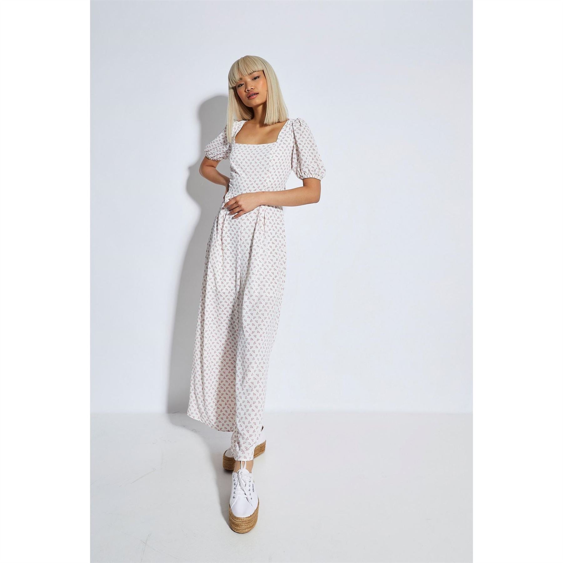 Glamorous White Pink Cluster Ditsy Jumpsuit