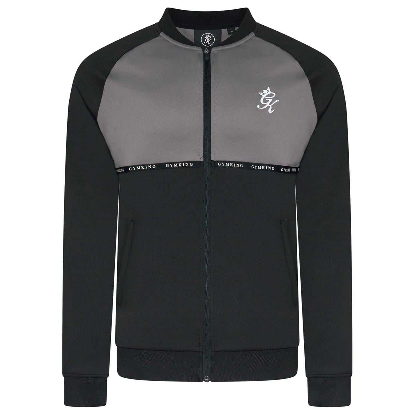 The Gym King track jacket from the activewear collection features a full zipper closure and a regular fit. It showcases a stylish color block pattern with raglan sleeves and ribbed cuffs and hem. The jacket is embellished with a logo and lettering, adding a distinctive touch to its design.