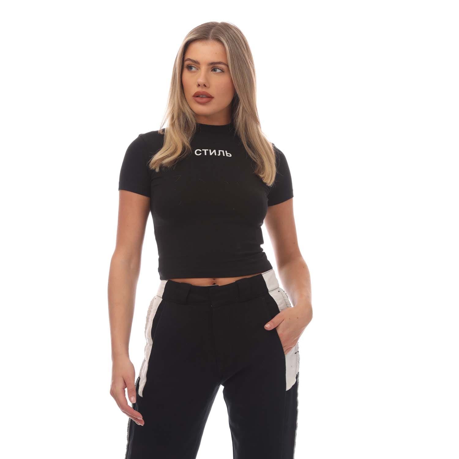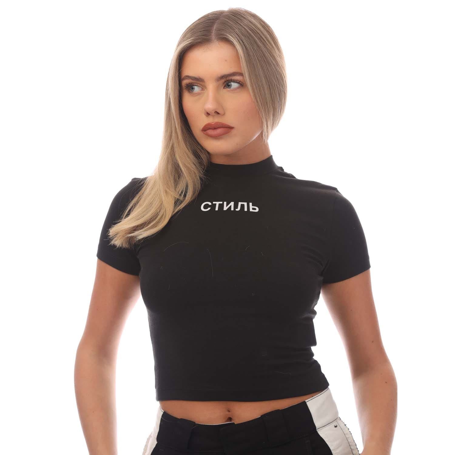 Womens Heron Preston Flaming Skull Baby T-Shirt in black - white.