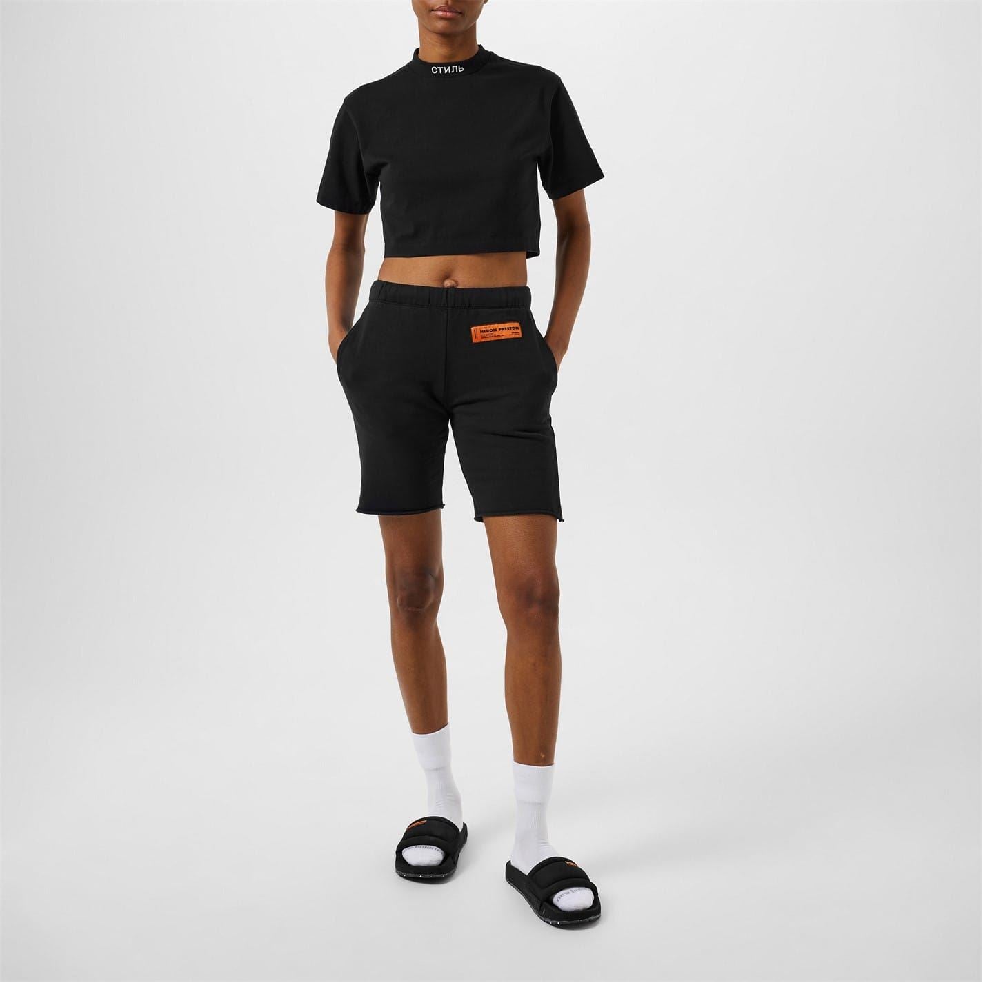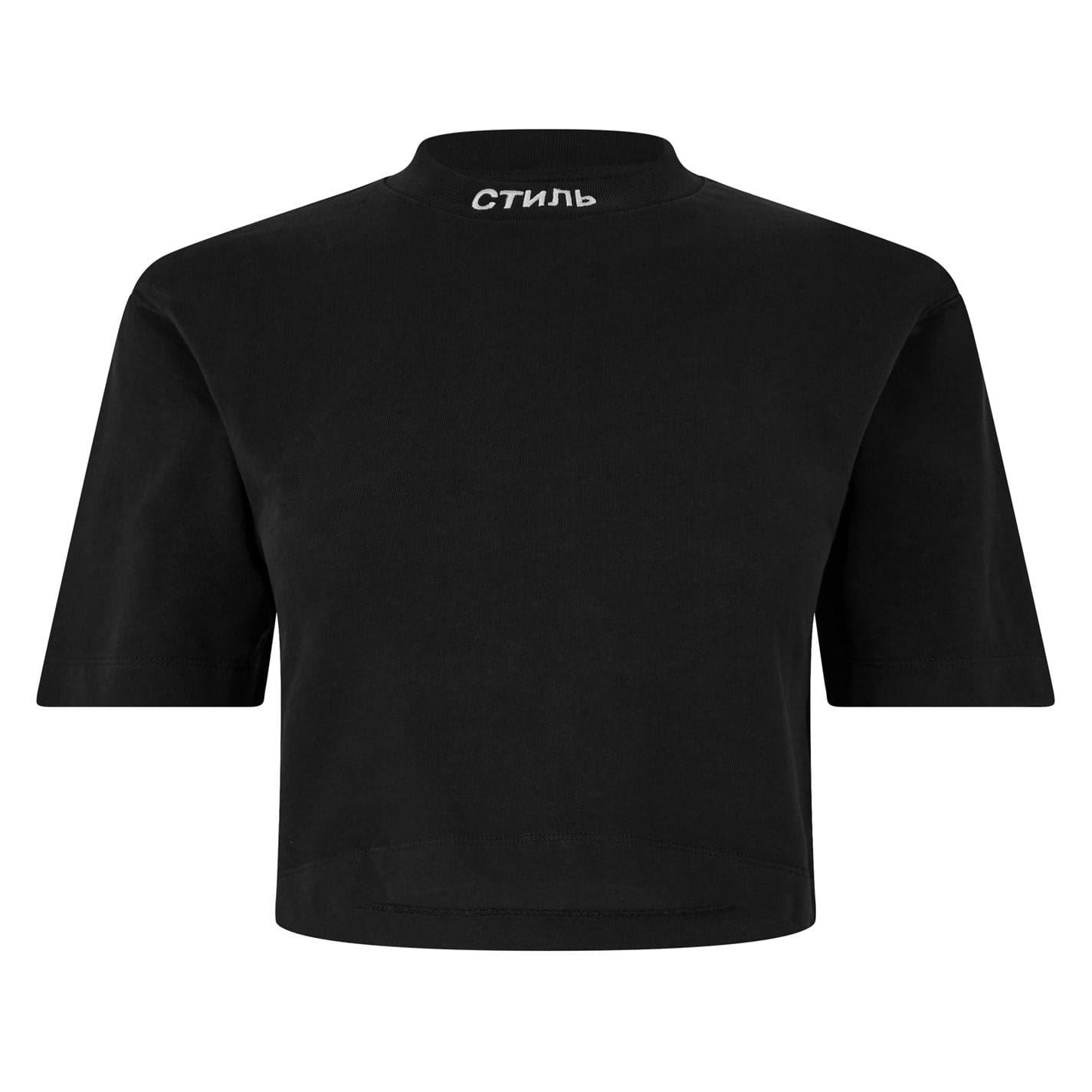 This Heron Preston cropped t-shirt is part of the casual collection, featuring a mock neck and short sleeves. Designed with a regular fit, it showcases the brand's logo embellishment, offering a stylish yet relaxed look for everyday wear.