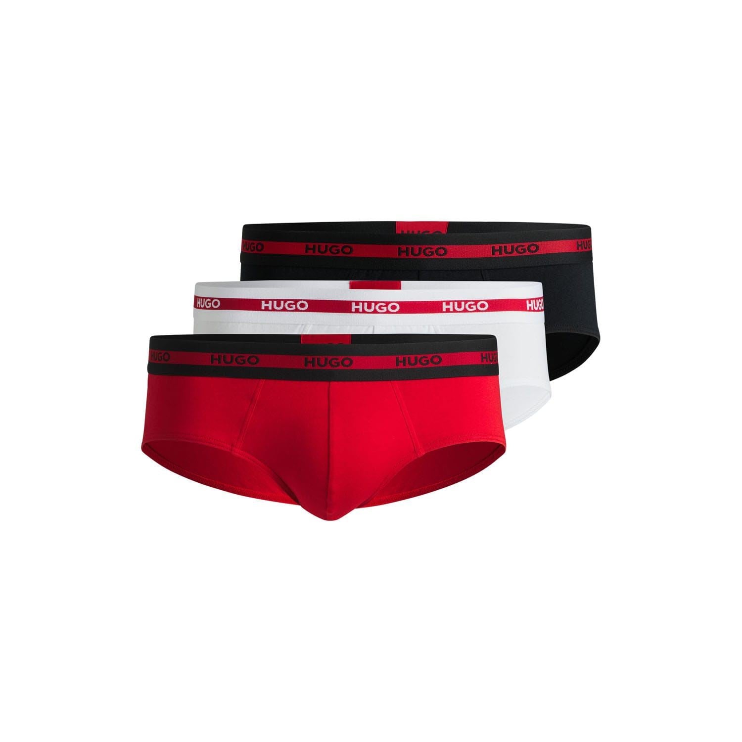 Topped with repeat-logo waistbands these three pairs of HUGO Menswear briefs offer comfy foundations.