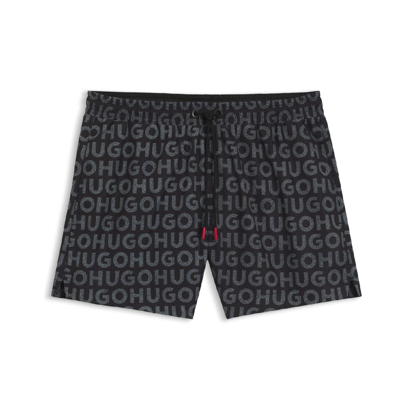 Naturally quick-drying swim shorts in recycled material by HUGO Menswear. This fully lined pair is printed all over with a HUGO logo motif.