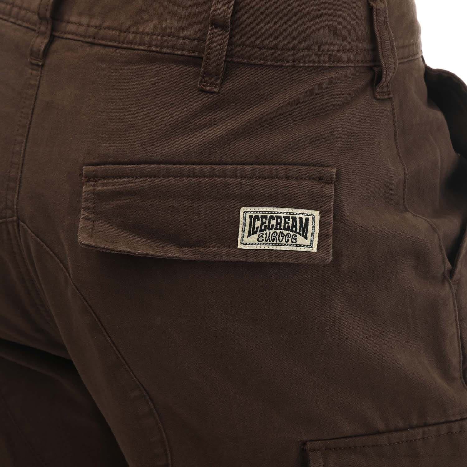 Mens Icecream Running Dog Cargo Pants in brown.