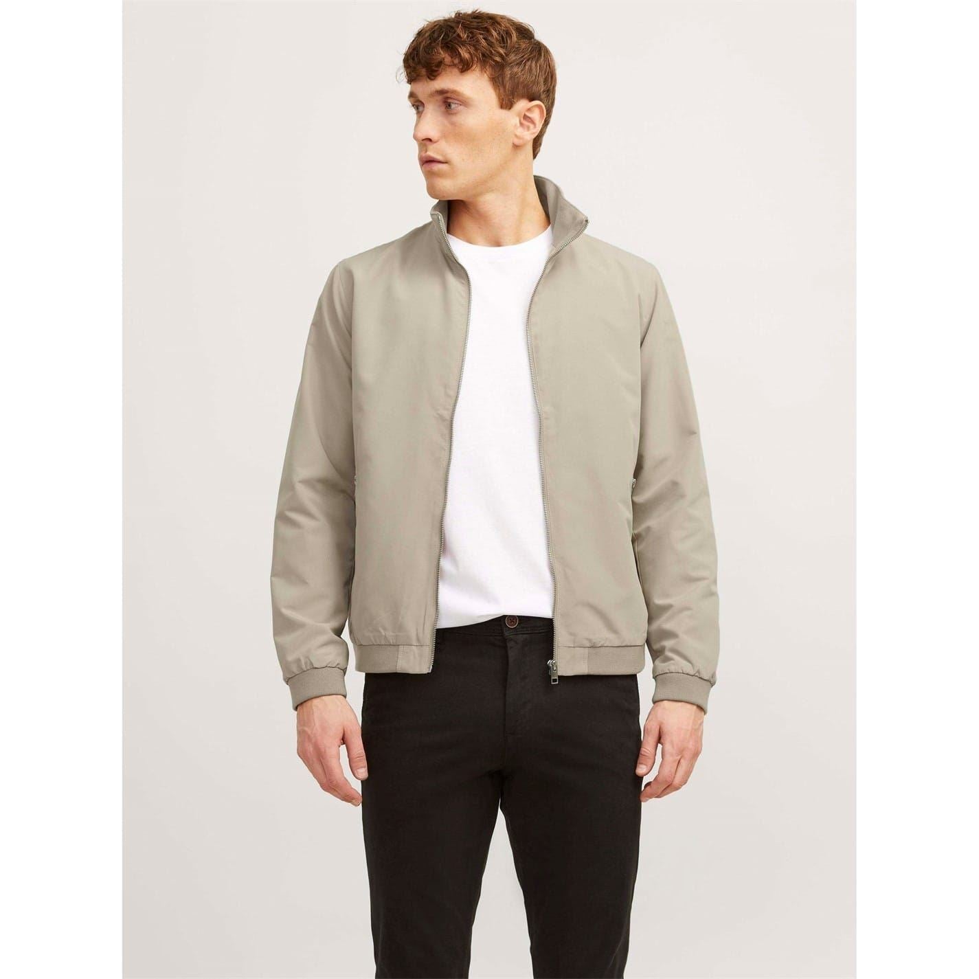 Jack and Jones Rush Solid Patterned Zipped Pocket Ribbed Cuff Harrington Jacket