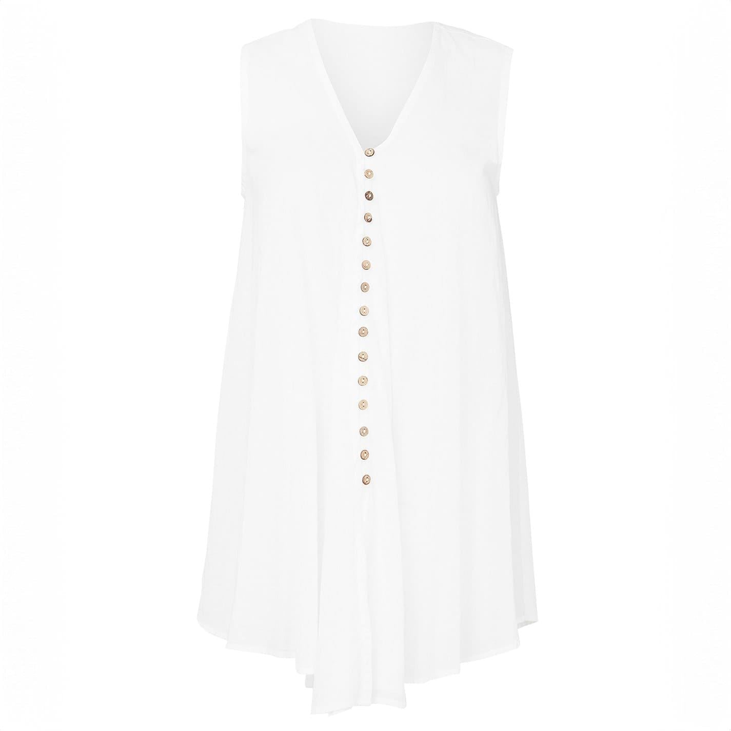 A perfect piece for summer, this blouse proves there’s beauty in simplicity. Teaming a stylish V neck and floaty shape, it’s flattering for any figure - and because it’s sleeveless, you’ll always get the sun on your shoulders on those gorgeous summer days. Finished with cute button detailing, this blouse adds a touch of class to any jean-shirt combo.