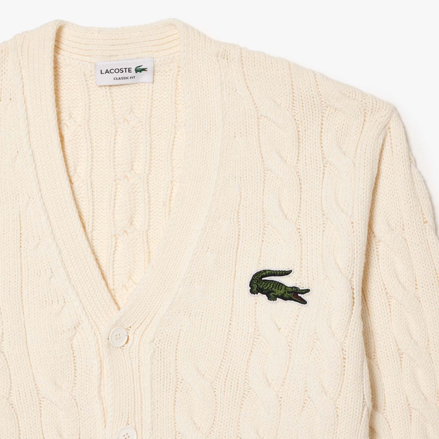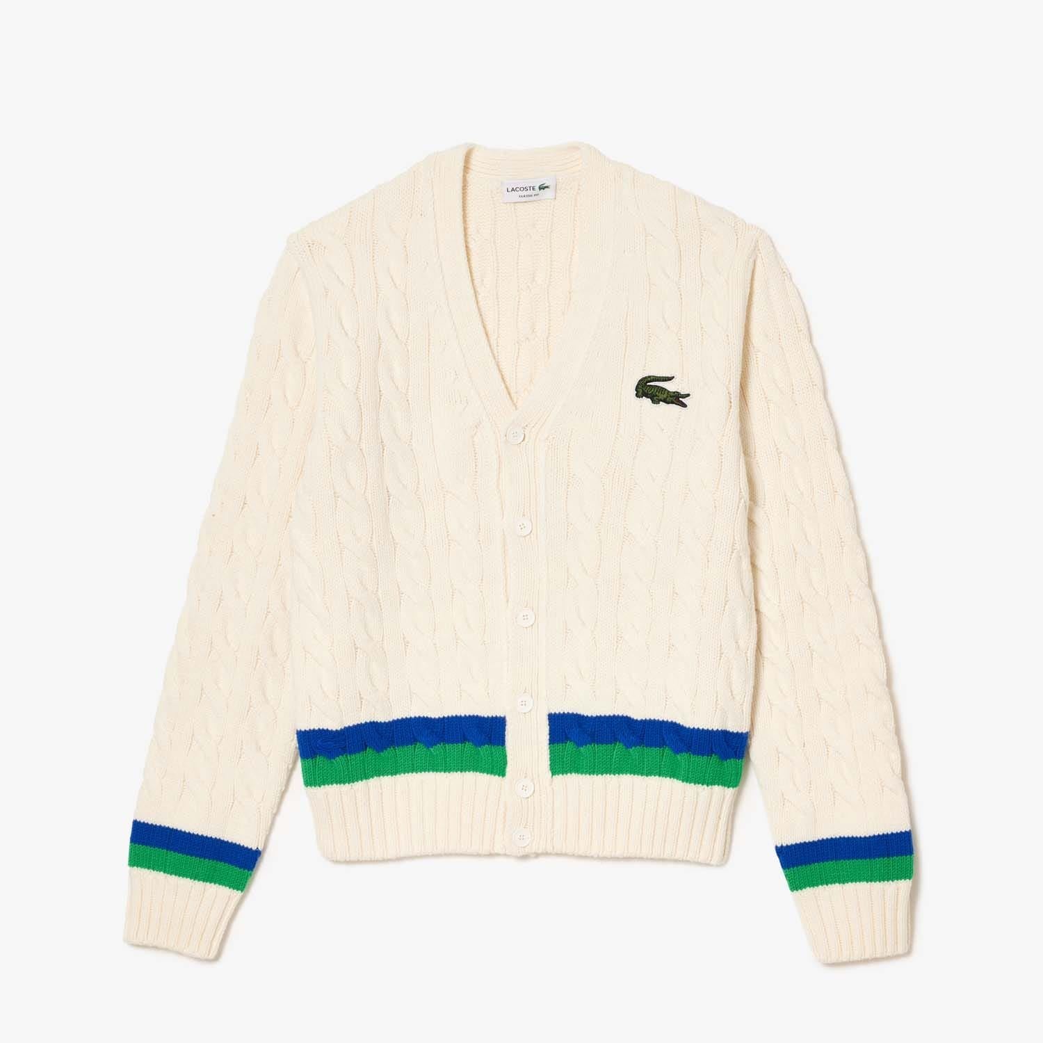 Unisex Lacoste Cable Knit Striped Cardigan in white - blue - green
