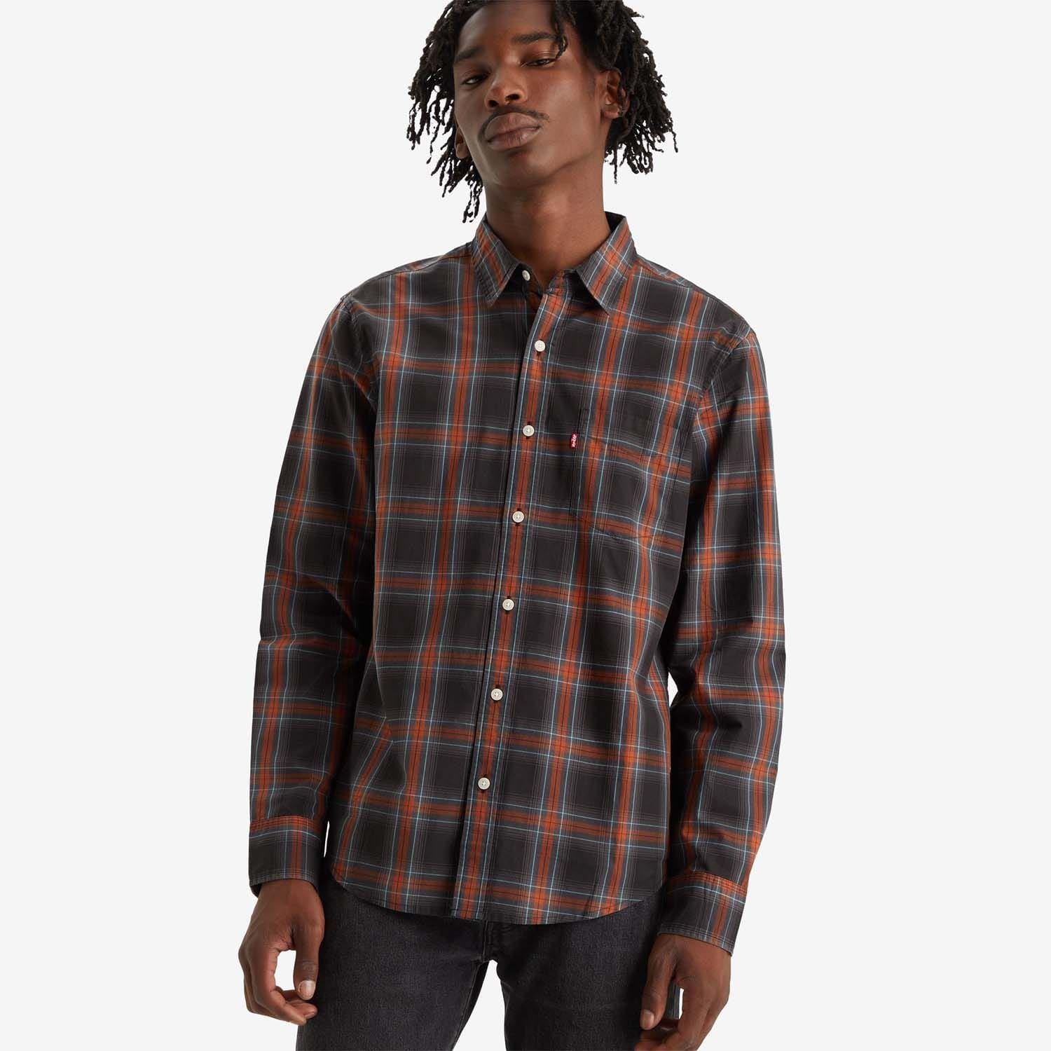 Mens Levis Sunset 1 Pocket Standard Shirt in black red.