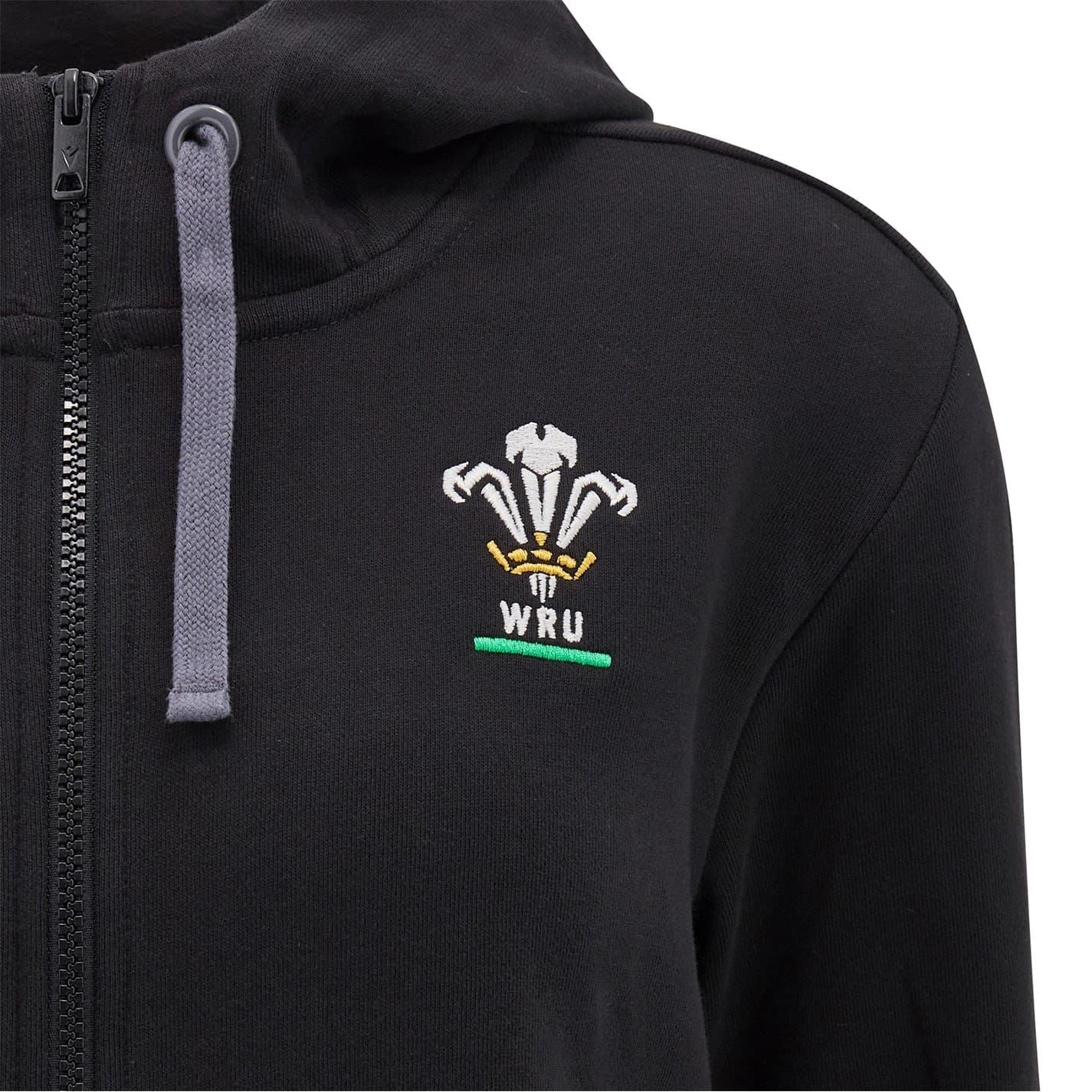 Experience the unstoppable spirit of Welsh rugby with the Macron Welsh Rugby Union Zip Hoodie 2024/25. Whether in the pulsating atmosphere of the stadium or supporting from the comfort of home, this black hoodie with subtle red and gold details captures the essence of Welsh rugby.