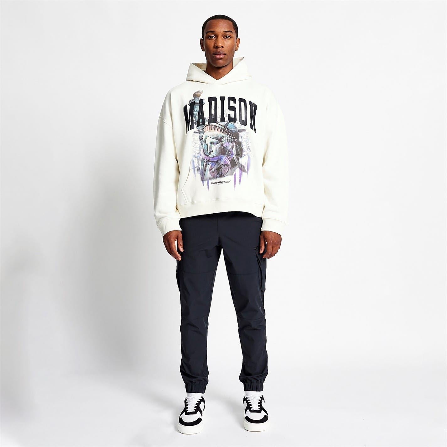 The Liberty Hoodie is a graphic print hoodie design. Crafted from heavy weight 100% cotton brushed back fabric with a slight oversized fit. Featuring the iconic Statute Of Liberty with a modern twist, underneath our statement Madison branding.