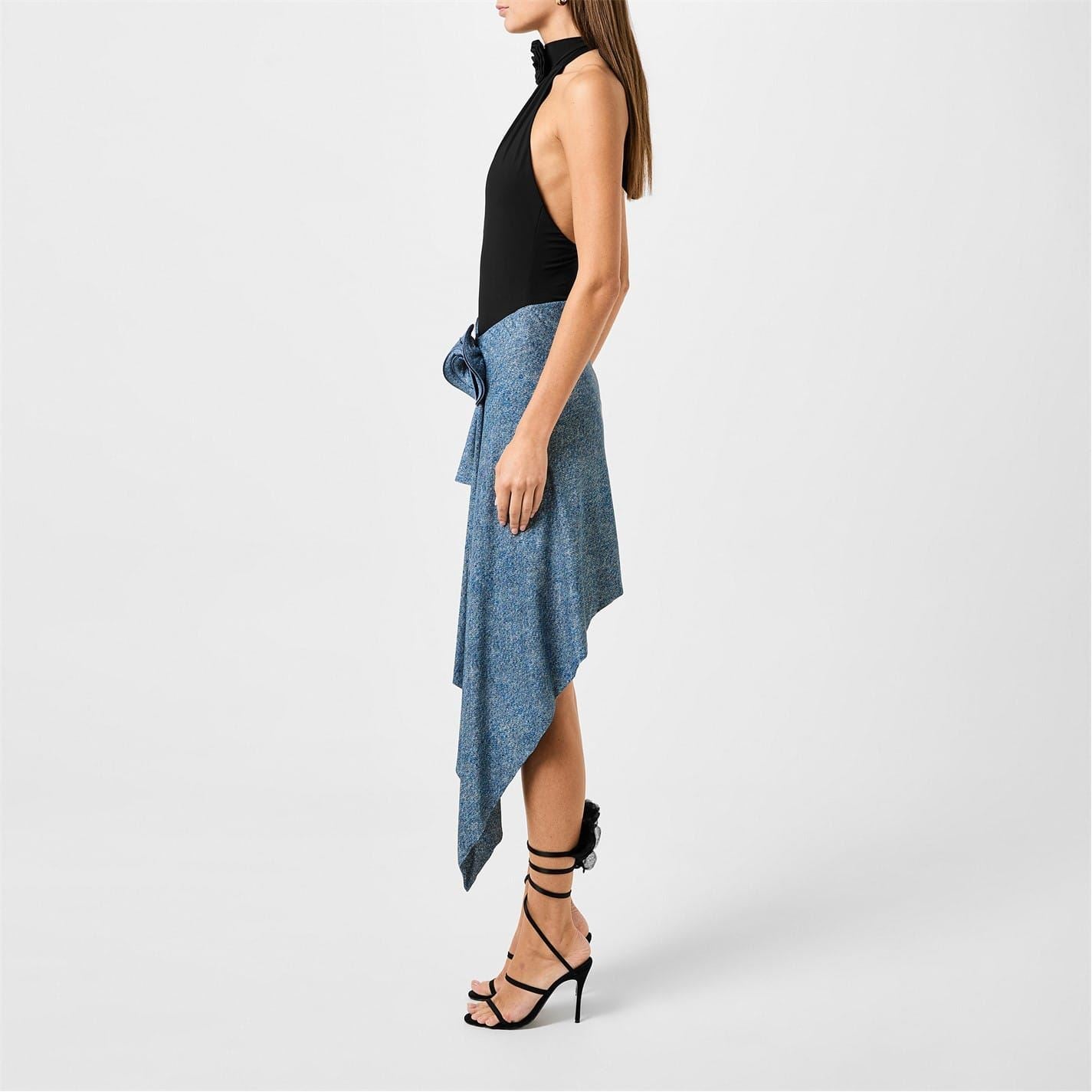 - Setting itself apart with a floral appliqué and denim print, this swim skirt exudes a sense of artistry and individuality. Designed to transition seamlessly from poolside lounging to beach bar chic, it is perfect for any sun-drenched occasion. Radiating luxury and refinement, embrace the luxury of Magda Butrym's Asymmetrical Draped Swim Skirt and make a statement wherever you go.
