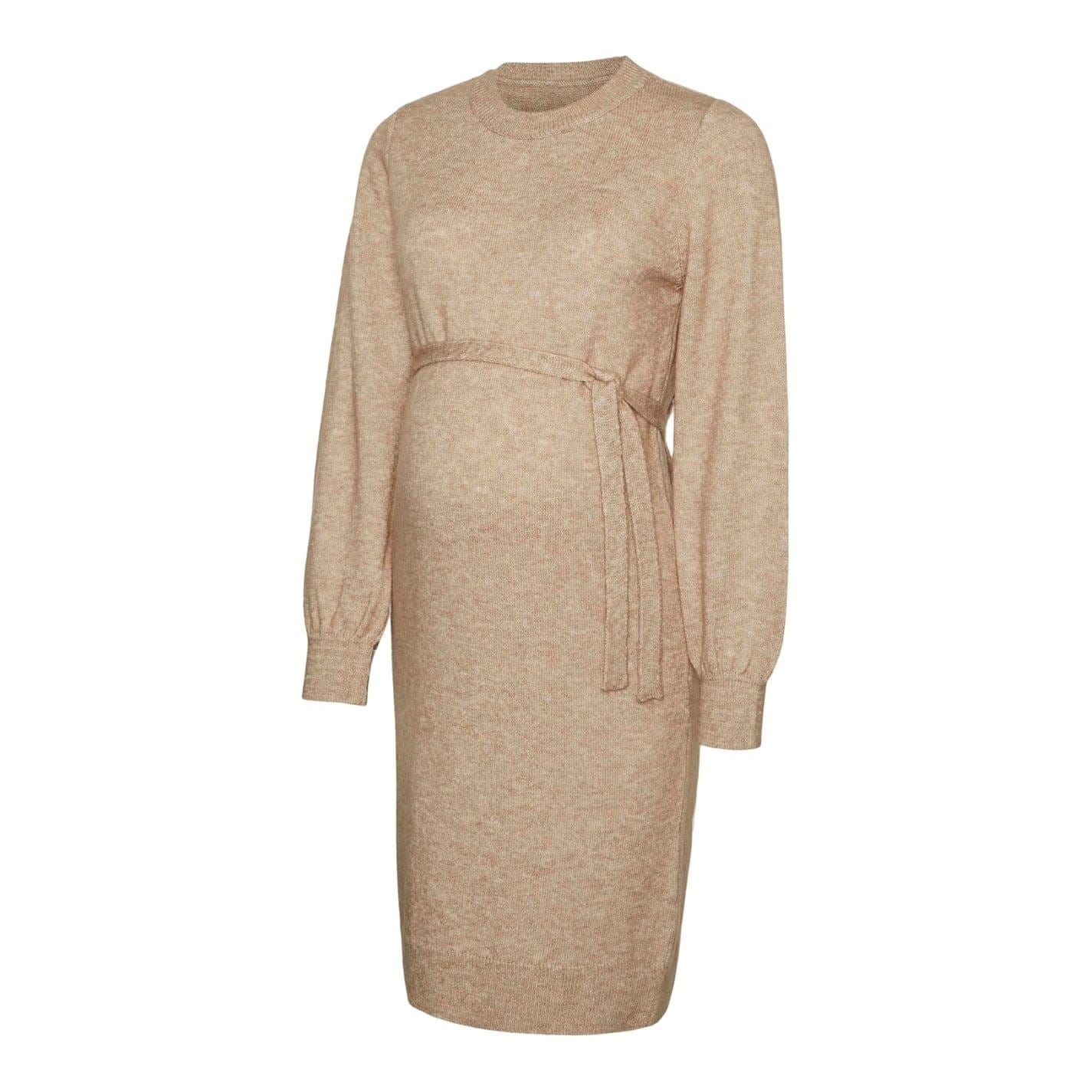 This Mamalicious mini sweater dress is a stylish choice for cooler days. Featuring a crew neck and ribbed collar, it offers a comfortable regular fit. The solid pattern and ribbed hem add a touch of elegance, while the long sleeves provide warmth. A tie closure completes the look, making it a versatile addition to your wardrobe.