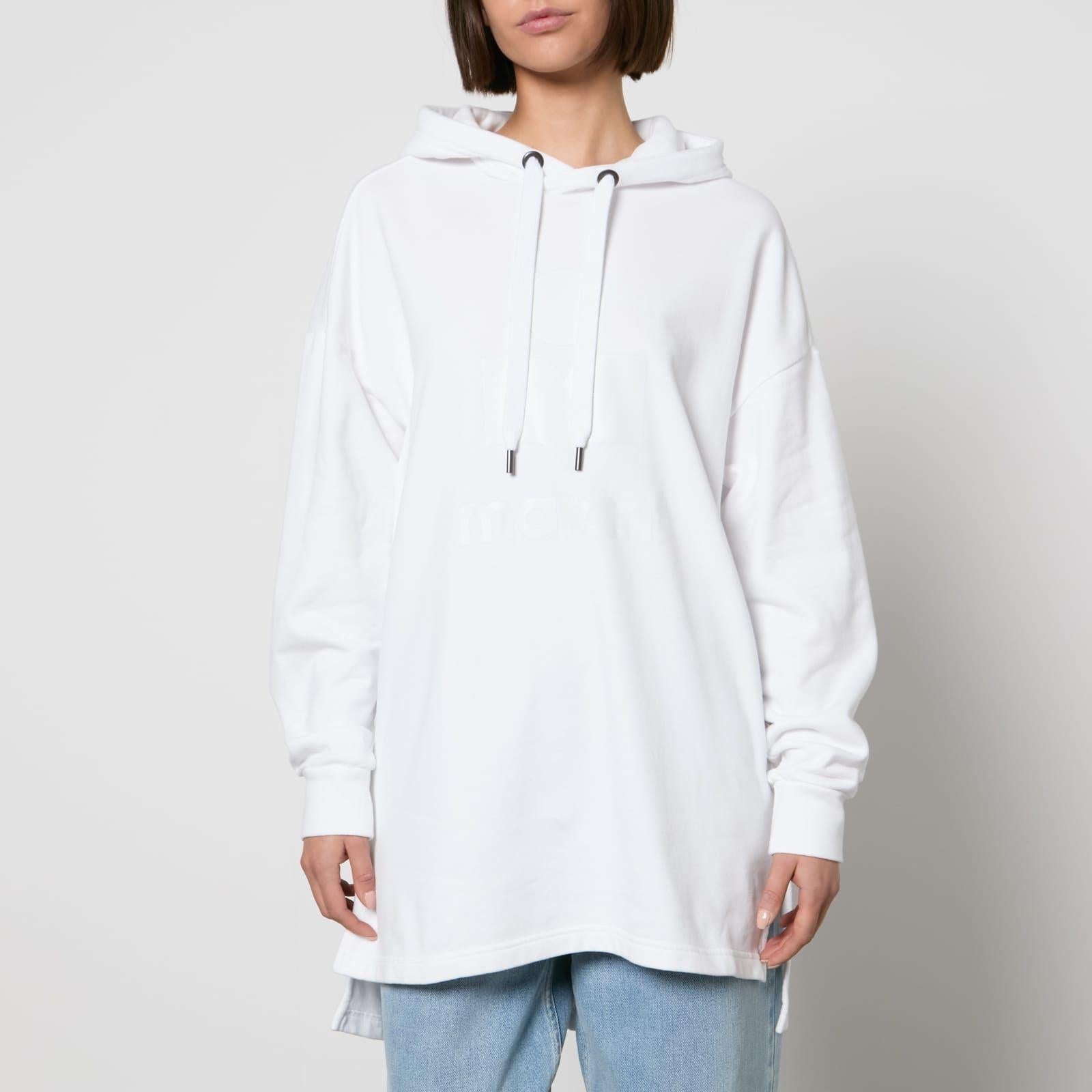 Drawstring hood with long drawstrings that have silver-toned ends.Dropped shoulders.Ribbed cuffs.Short side slits.High-low hem.Logo print on the front.Relaxed fit.