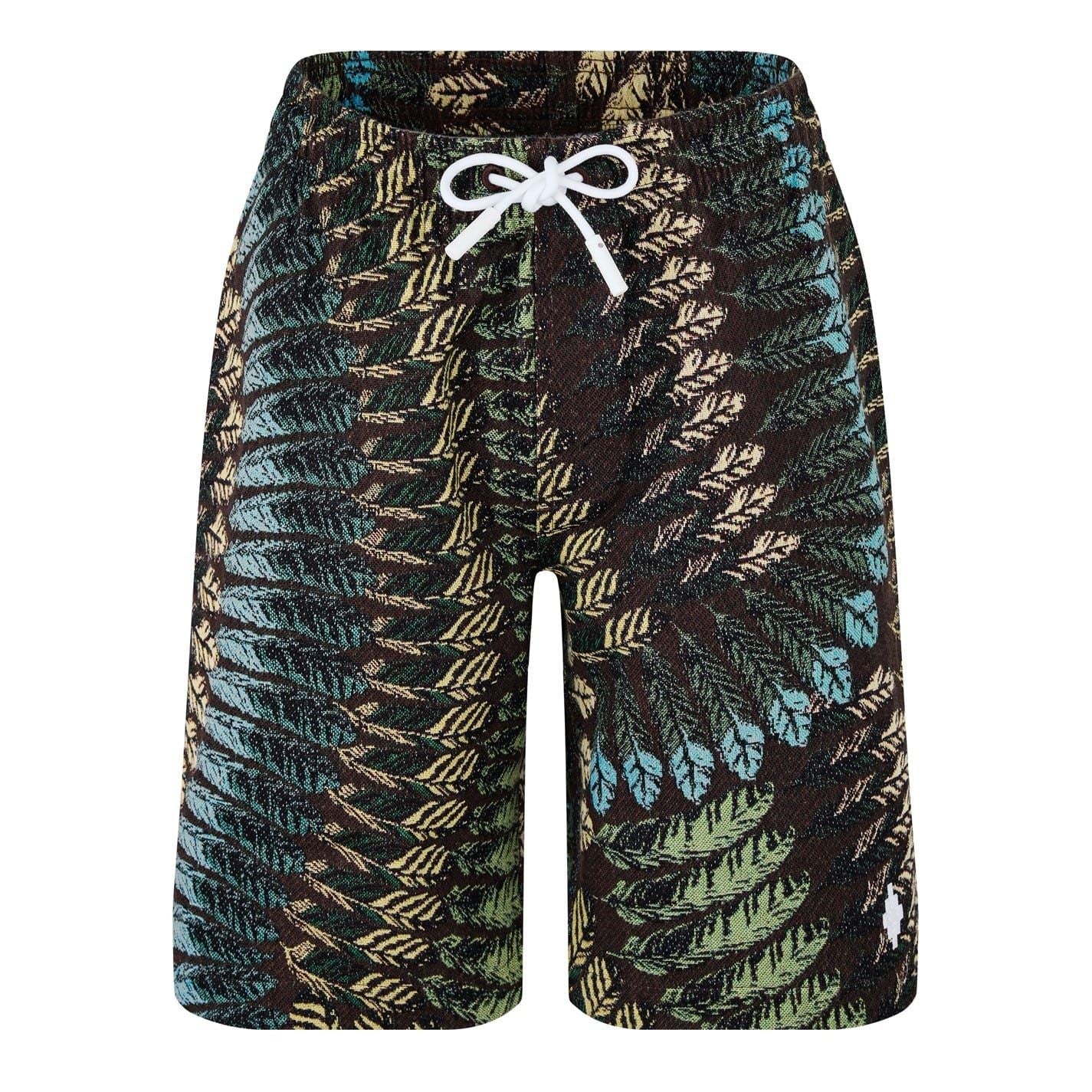 Marcelo Burlon sweat shorts feature a distinctive leaf print and a comfortable drawstring closure. These shorts are adorned with a subtle logo embellishment, adding a touch of brand identity to the design. Ideal for casual settings, they offer a stylish yet relaxed fit, perfect for those seeking both comfort and a unique aesthetic.