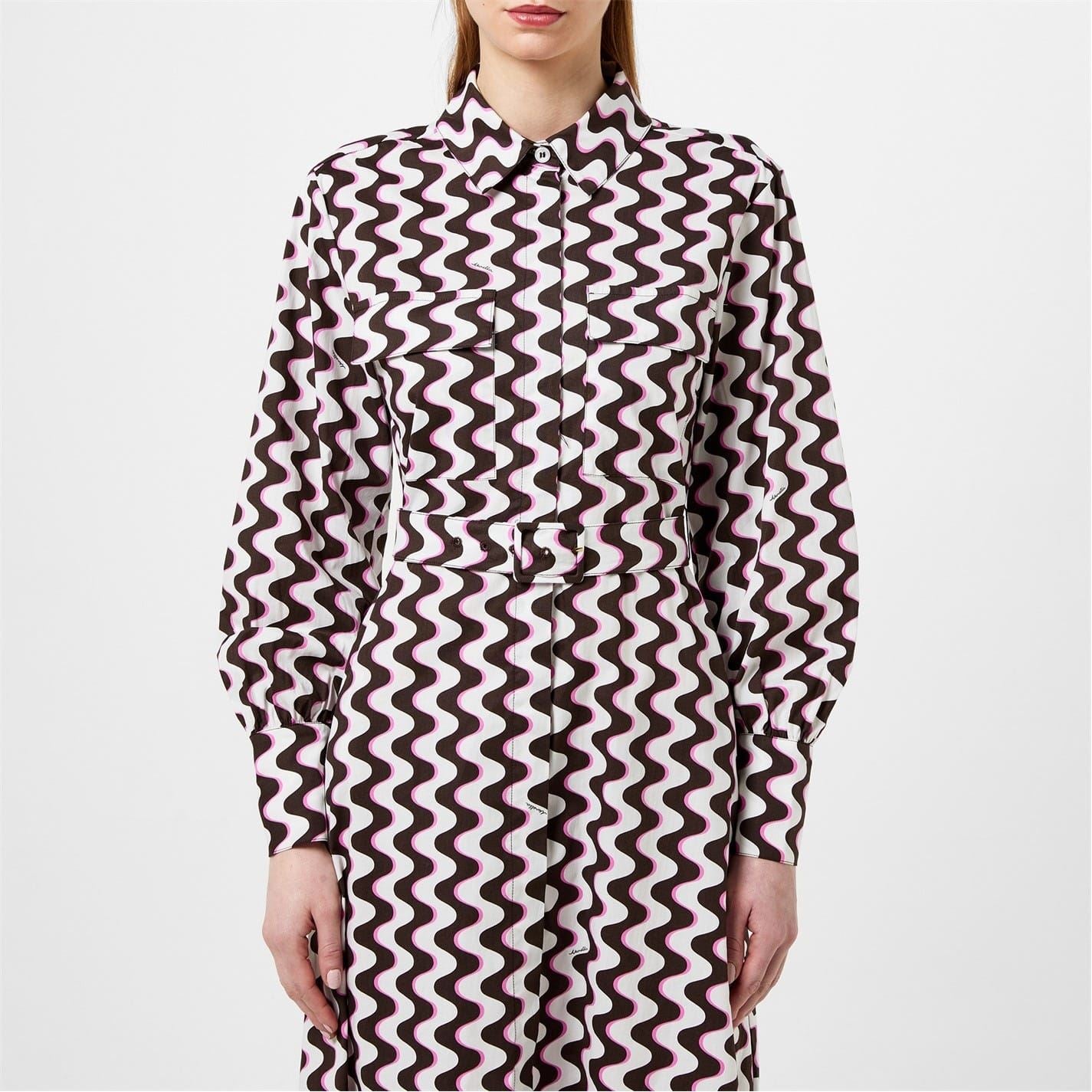 Embrace elegance with this Marella shirtdress. This maxi dress features a collared neck with a shirt collar and long cuff sleeves, creating a sophisticated look. The wave pattern adds a touch of flair, while the straight hem and button closure complete the design. Crafted for a regular fit, this dress effortlessly combines style and comfort.