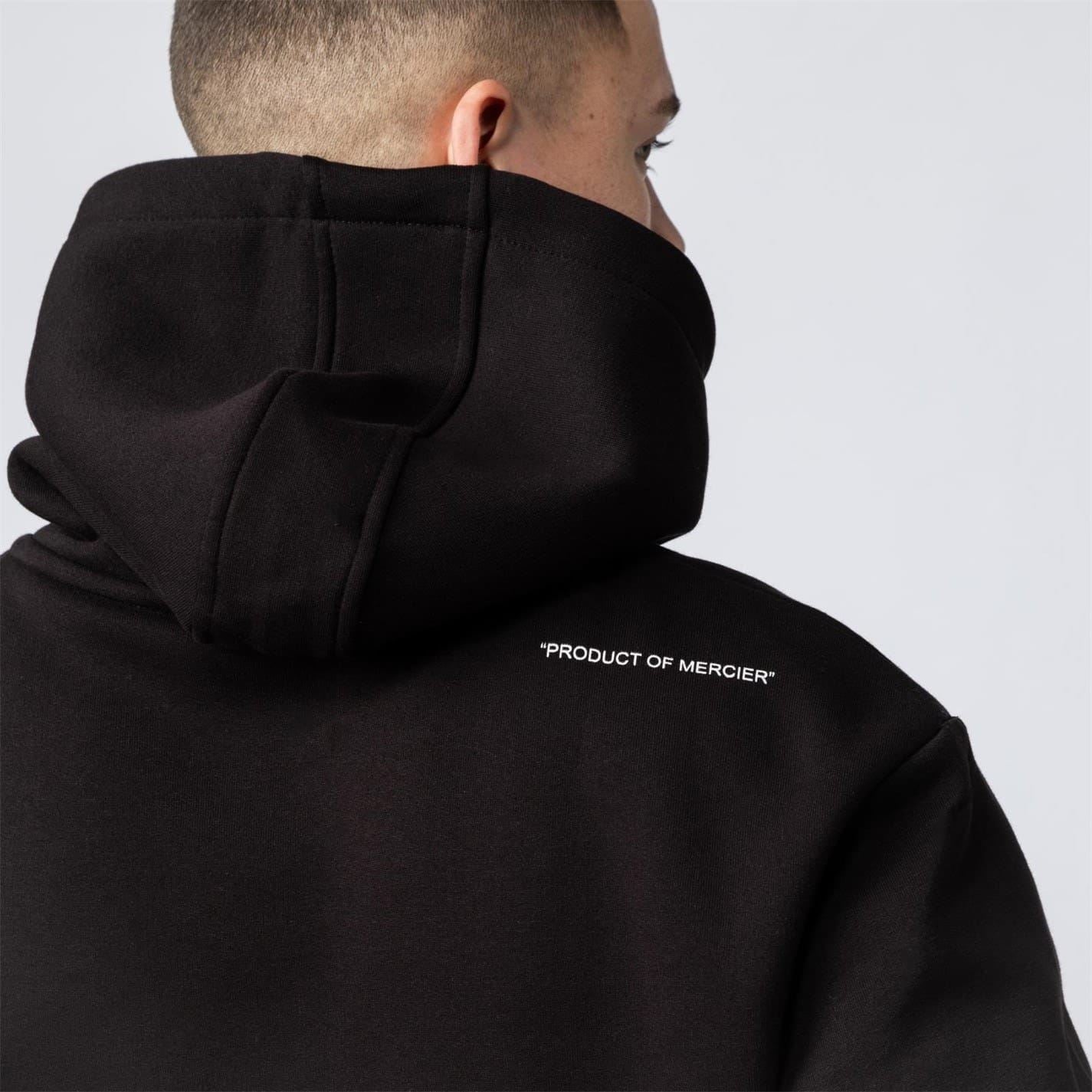 This Mercier top features a hooded neck and long sleeves, offering a regular fit. The design is enhanced with a front logo and chest logo, complemented by embroidered patches and a badge. The ribbed cuffs and banded hem add a touch of detail, while the logo print pattern completes the look.