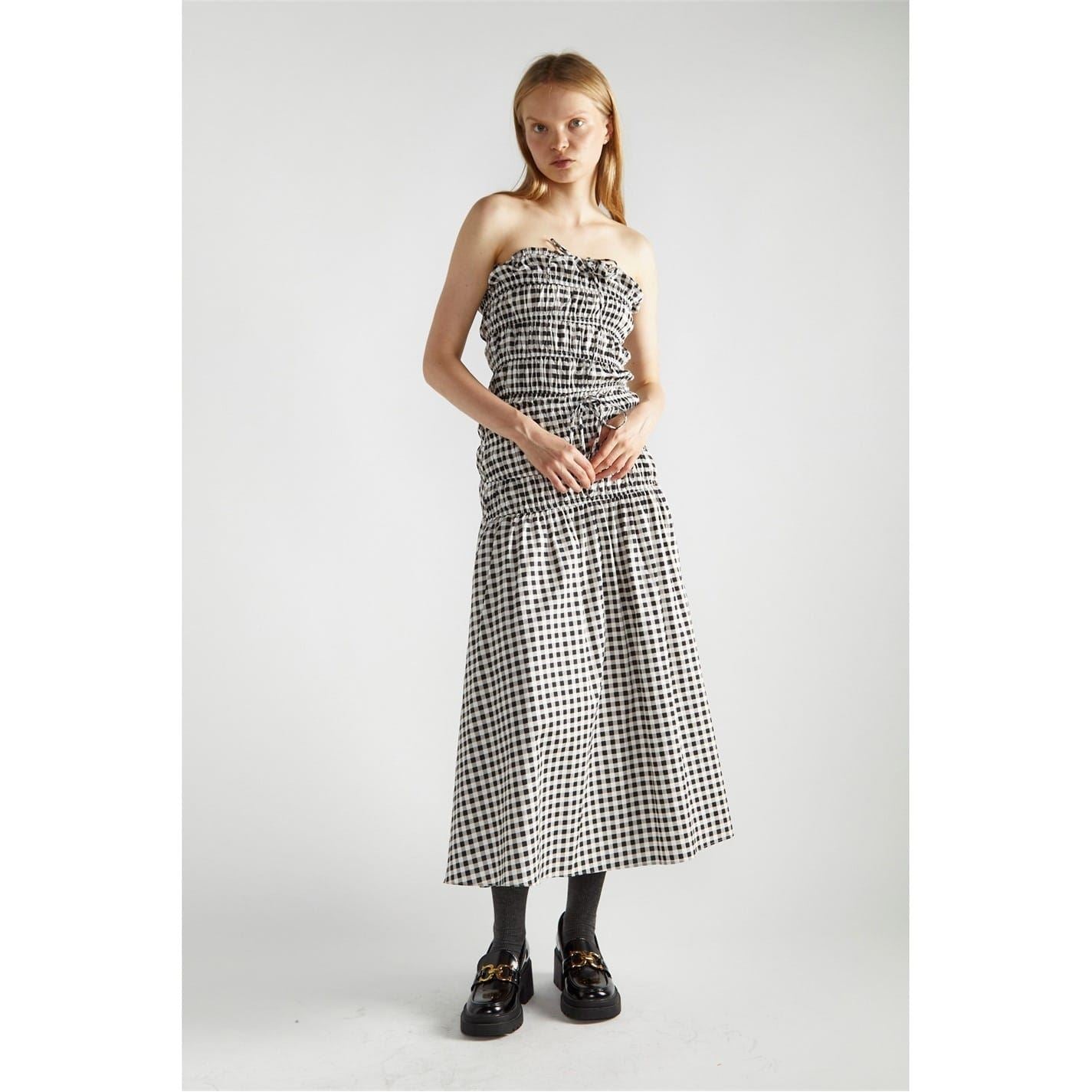 Narrated Women's Black White Gingham Print Bardot Crop-Top. This black and white gingham print Bardot crop top is like a slice of summer served up in fabric form. It's a cheerful little number that brings a touch of retro charm to your wardrobe. The classic gingham pattern gets a flirty update with the off-the-shoulder Bardot neckline, creating a look that's both sweet and sassy. It's the kind of top that makes you want to grab a picnic basket and head to the nearest park, even if you're just running errands. The crop length adds a modern edge, perfect for pairing with high-waisted shorts or skirts. This top is a true mood-lifter, ready to add a bounce to your step and a smile to your face. It's ideal for outdoor concerts, backyard barbecues, or just brightening up a regular Tuesday. Throw it on with your favourite denim for a casual look, or dress it up with a flowing skirt for a night out. It's like wearing a little piece of happiness - impossible not to feel good when you've got thi
