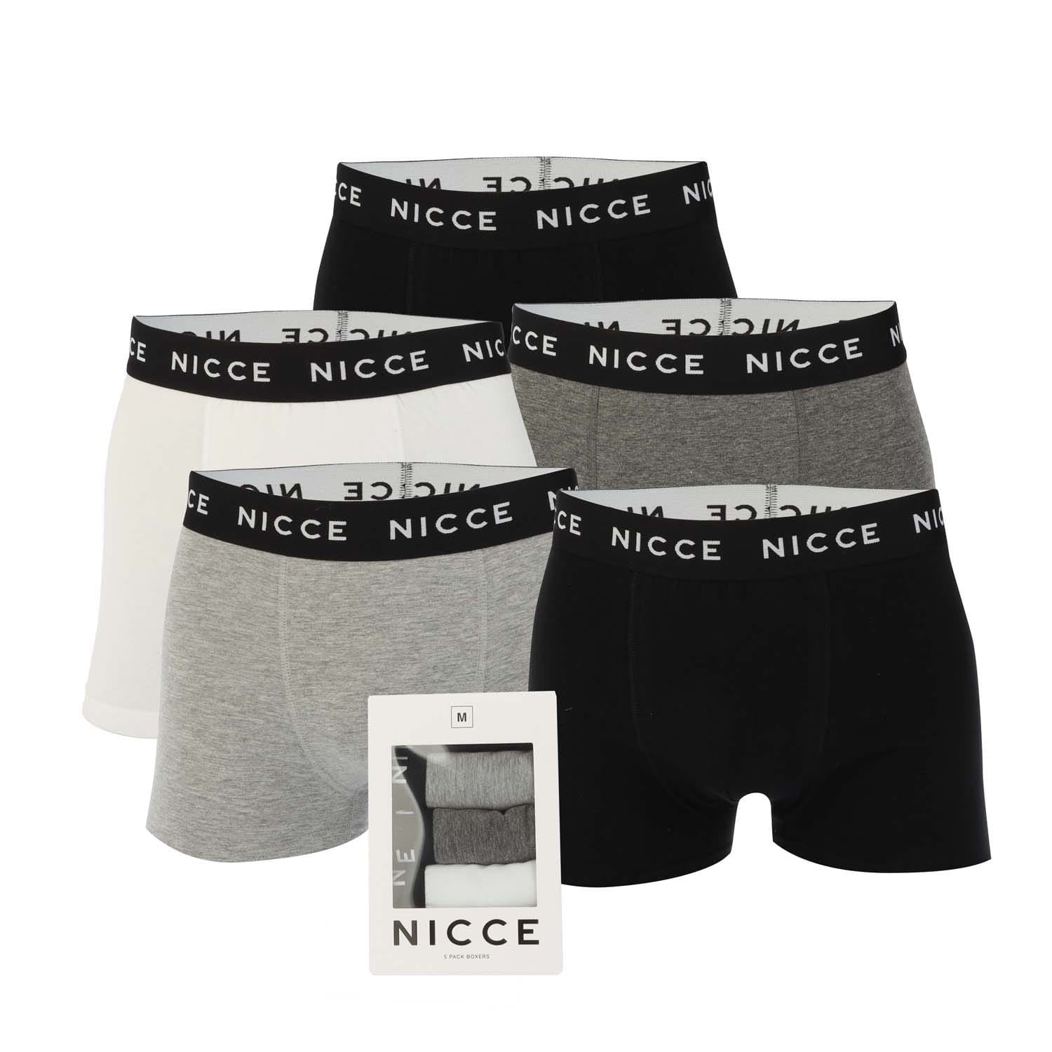 Mens NICCE Haunton 5 Pack Boxer Shorts in black grey white.