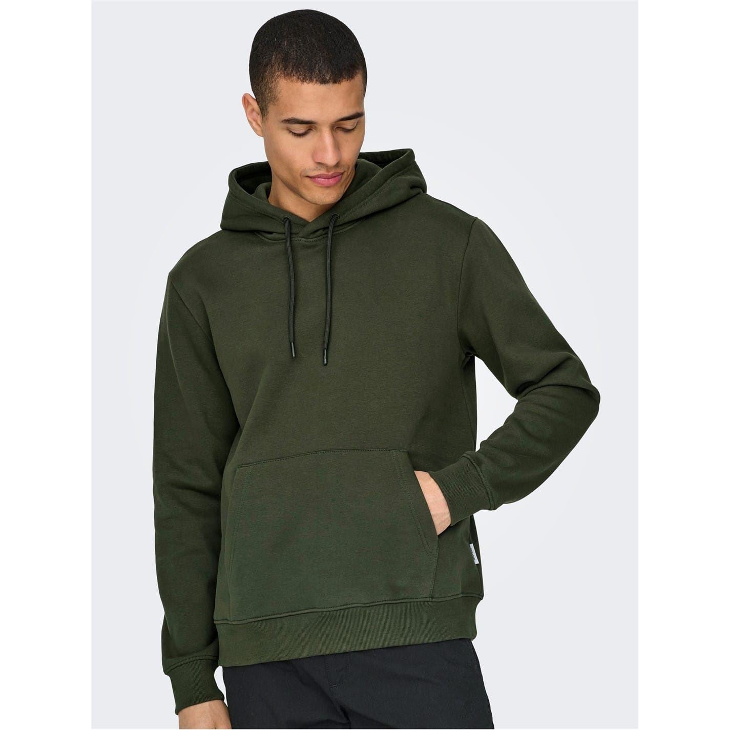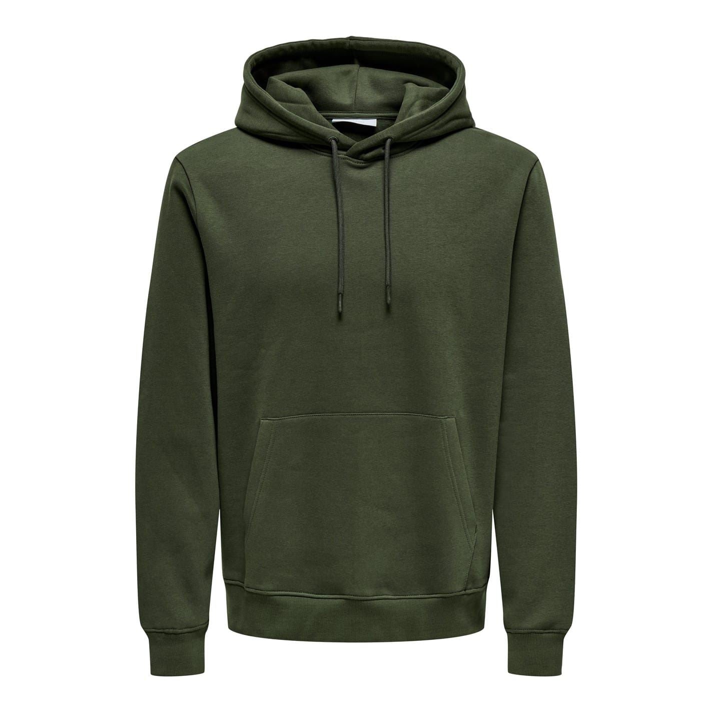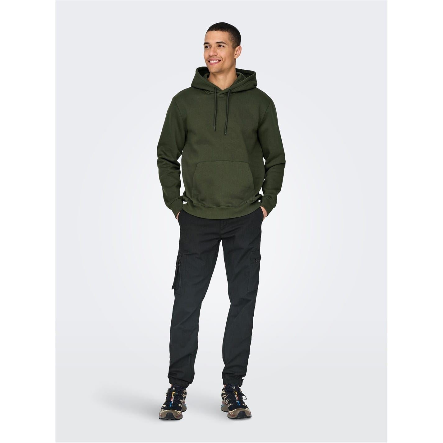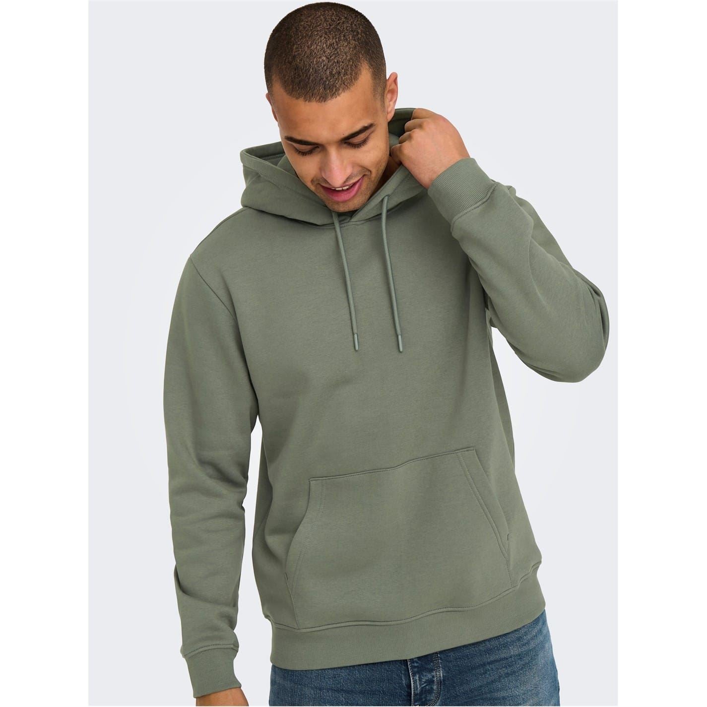 This Only & Sons hoodie sweatshirt is a versatile top featuring a hood with a drawstring. Designed in a regular fit, it includes long sleeves with ribbed cuffs. The kangaroo pocket adds a practical touch, making it ideal for casual wear. Crafted with attention to detail, this sweatshirt combines comfort and style effortlessly.