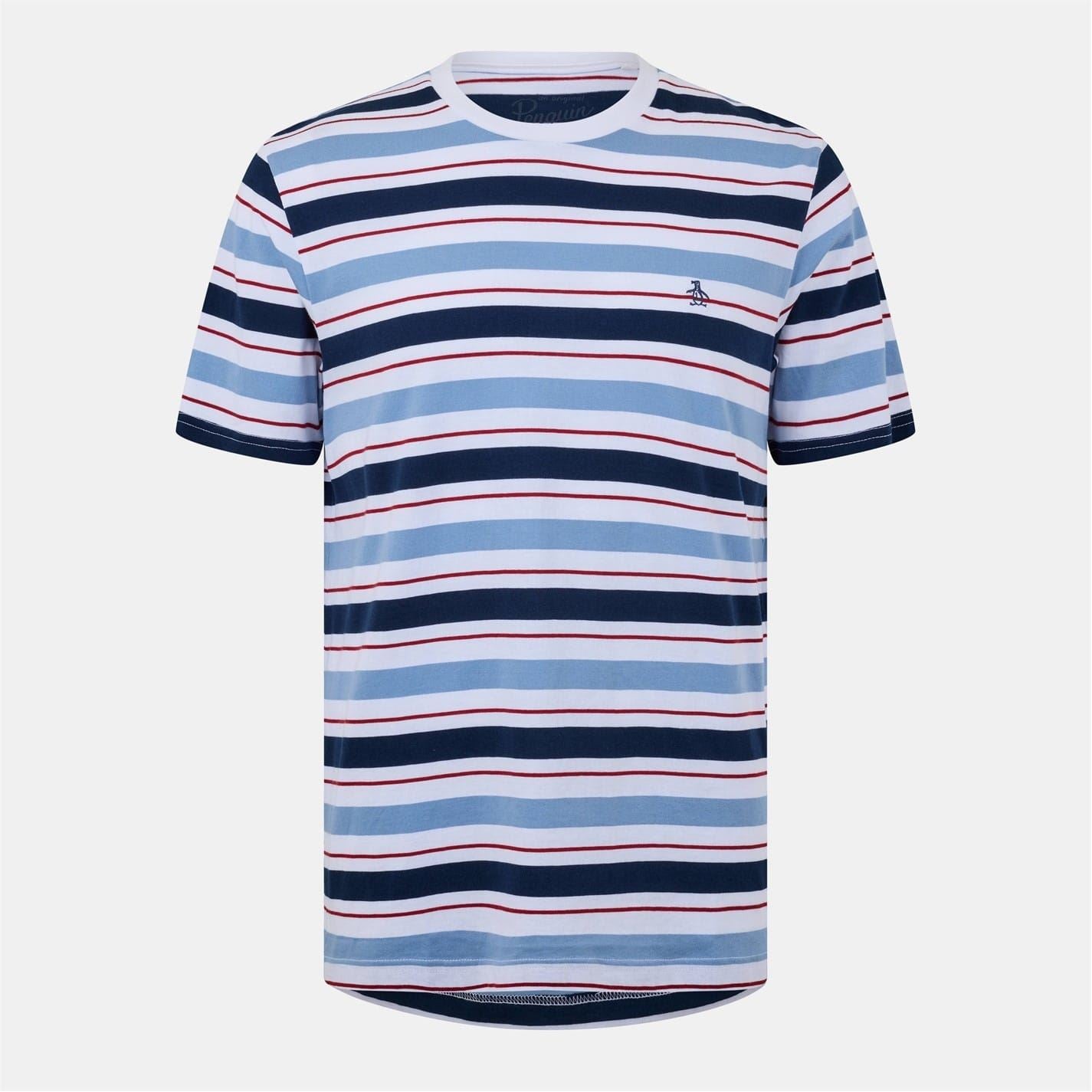 This Original Penguin top is a casual staple featuring a regular fit and short sleeves. The striped pattern adds a classic touch, while the crew neck ensures comfort. A subtle logo embellishment completes the look, making it a versatile addition to any wardrobe.