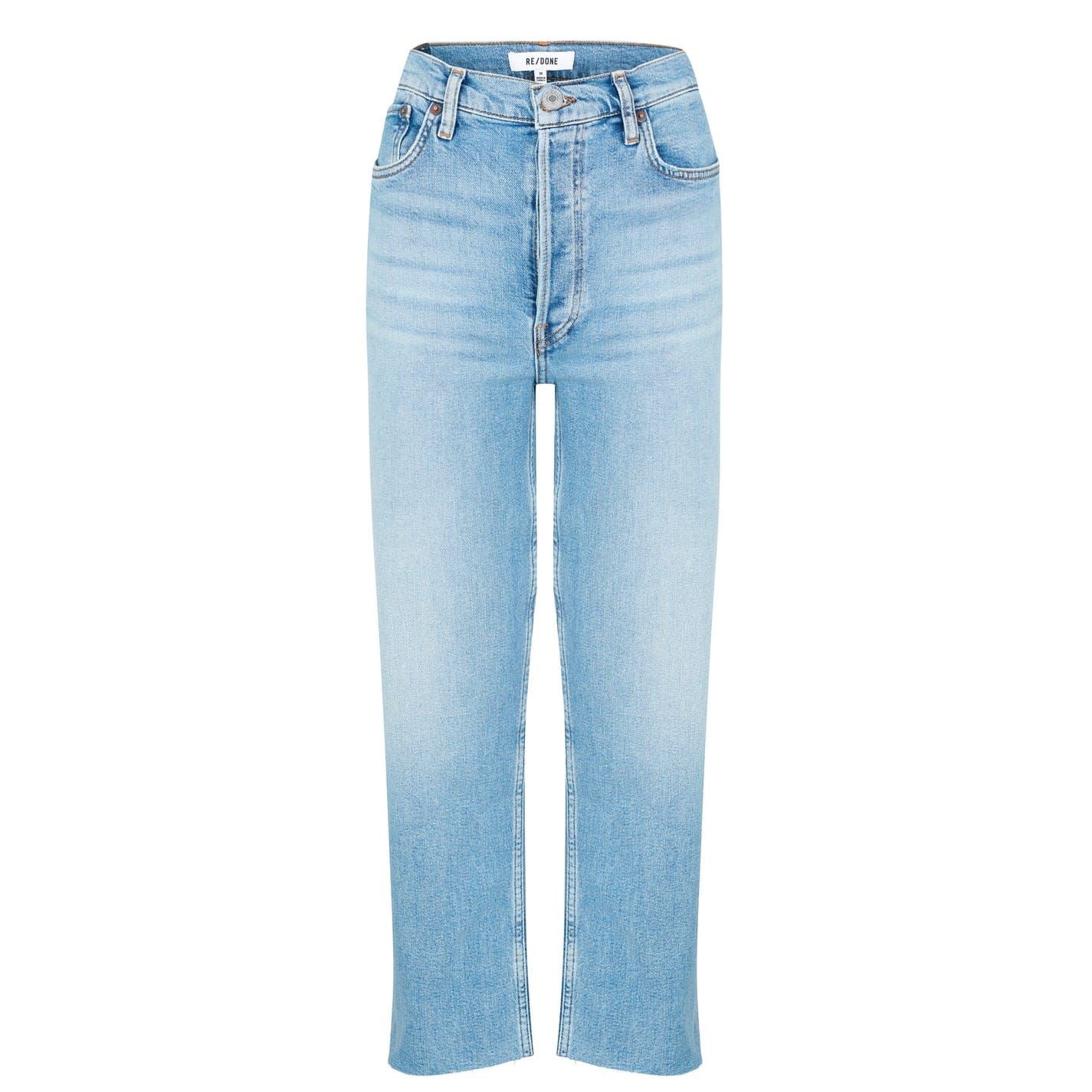 - Expertly made from a luxurious cotton blend denim, these button-fly jeans ensure both comfort and style with every wear. The high-rise fit accentuates the curves, while the straight leg creates a classic silhouette that effortlessly complements any ensemble. Cut to an ankle length with raw unfinished hems, a touch of contemporary flair is added to this retro denim style. Designed with the traditional five-pocket construction, carrying your everyday essentials is effortless, while the belt loops further enhance their versatility, making them an essential addition to any wardrobe.