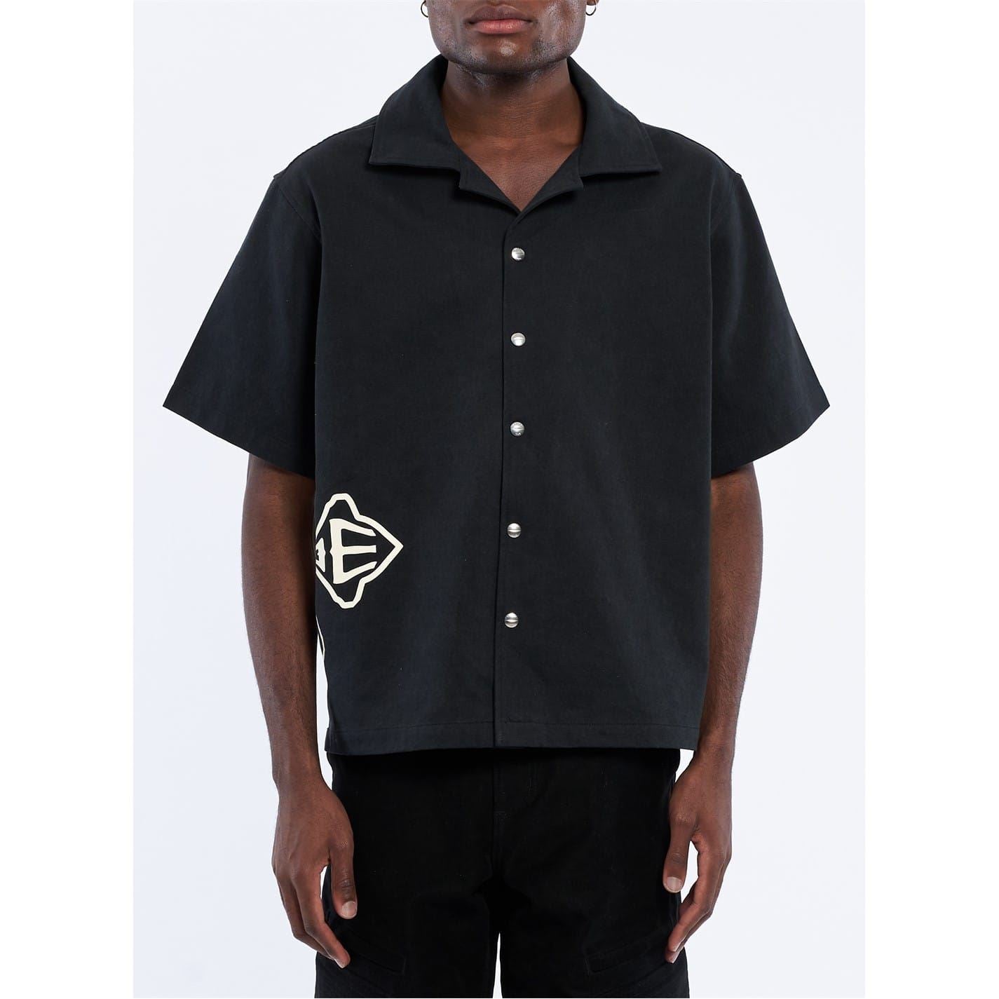 This Rhude top features a relaxed fit with short sleeves and a shirt collar. The graphic print showcases a large genie design, complemented by a logo embellishment. The button closure adds a classic touch to this stylish piece.
