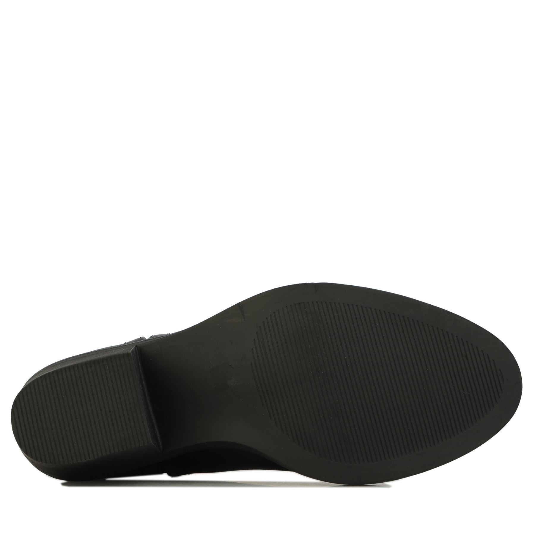 - Rubber sole with chunky stacked heel.