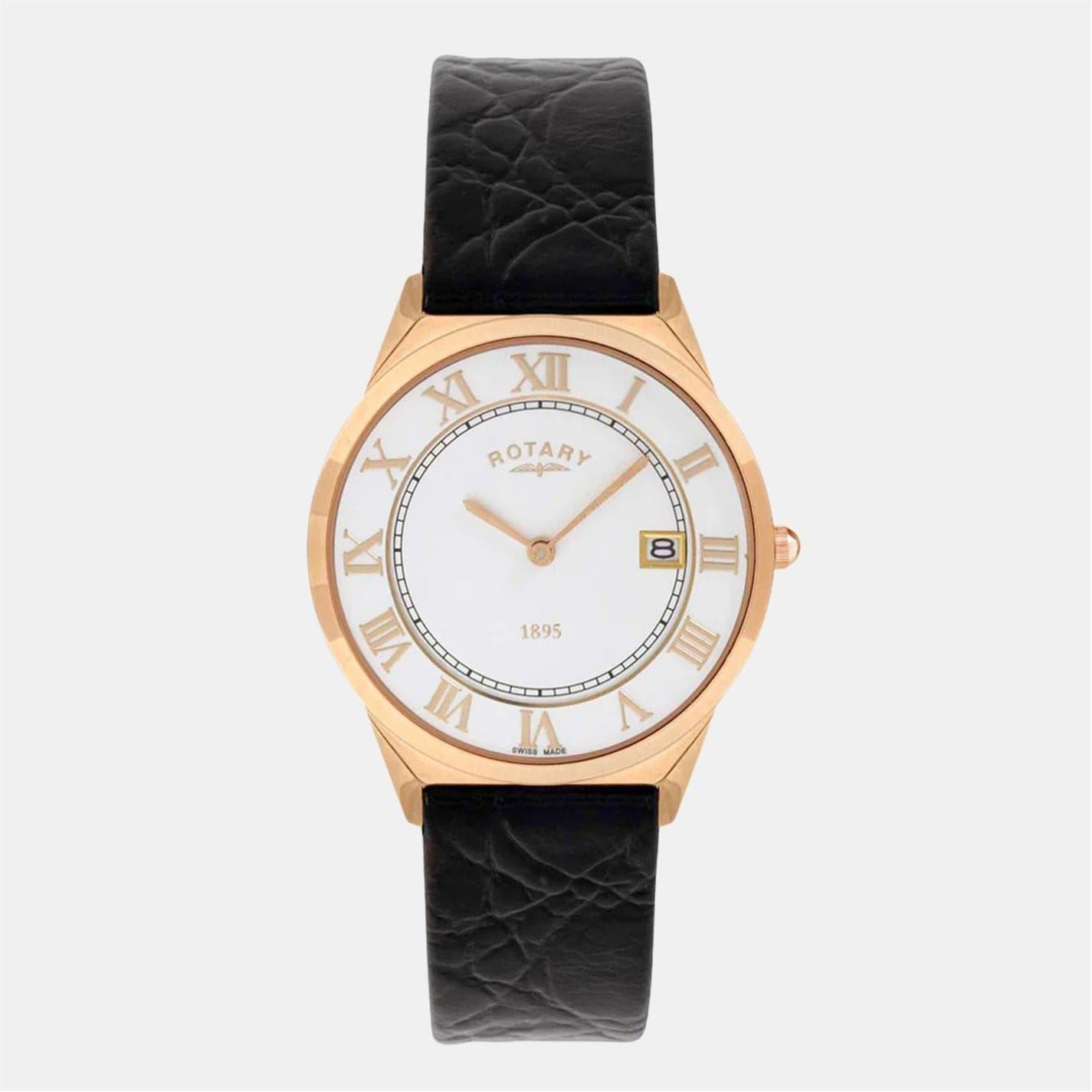 Discover the elegance of Rotary's wrist watch, featuring a classic analogue display. This timepiece boasts a pristine white dial, perfectly complemented by a single wrap leather strap. Ideal for those who appreciate timeless design and quality craftsmanship, this watch is a sophisticated addition to any collection.