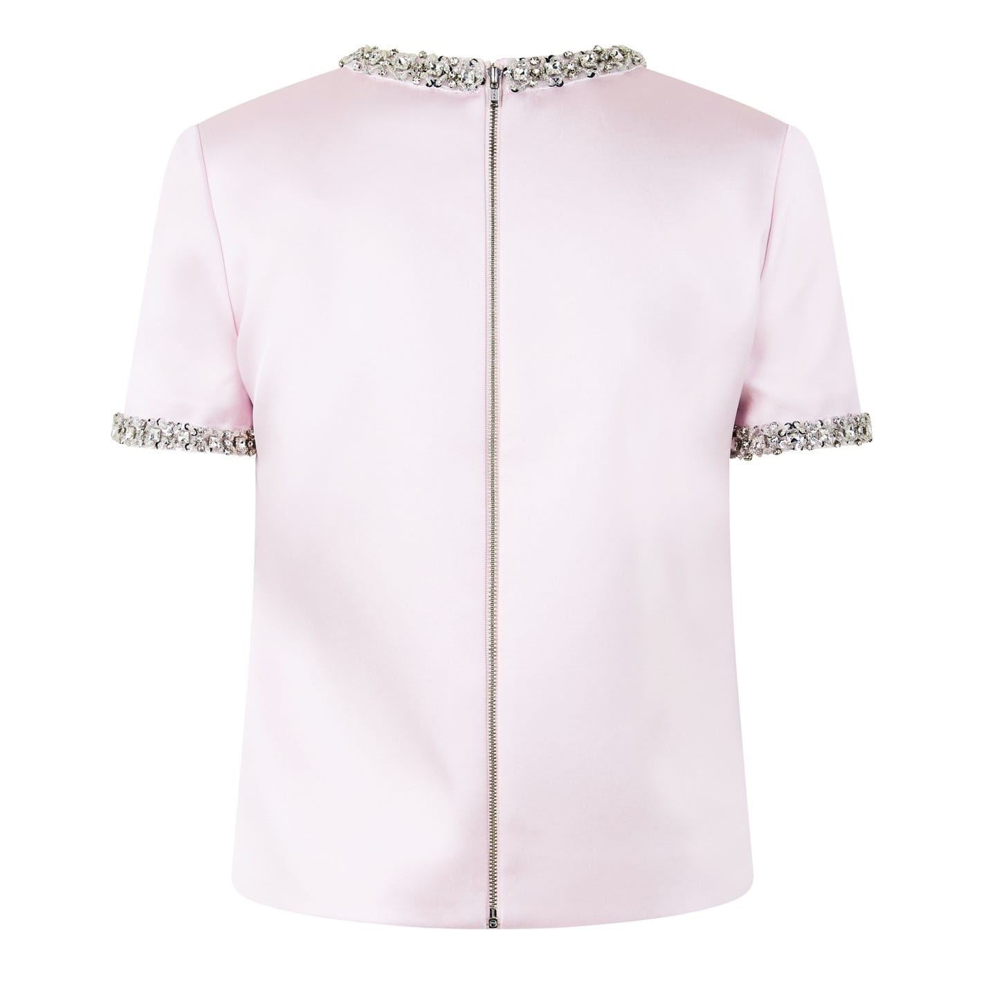 Self Portrait Keyhole Neck Satin Emb Blouse