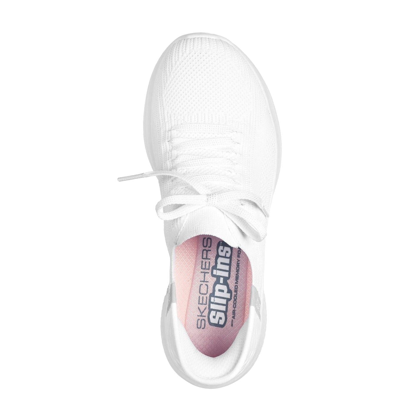 TOUCHLESS FIT™ Step into effortless comfort with Skechers Hands Free Slip-ins®: Ultra Flex 3.0 - Brilliant Path. Designed with our exclusive Heel Pillow™. This style features a Stretch Fit® engineered knit upper with deco laces, plus a cushioned Skechers Air-Cooled Memory Foam® insole.