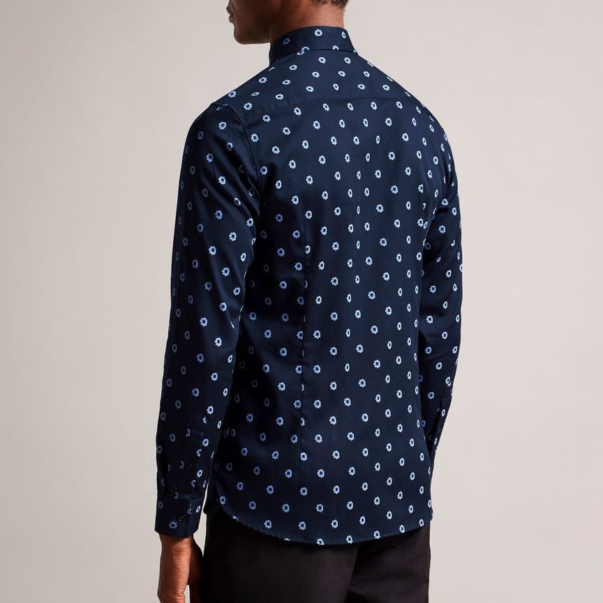 Mens Ted Baker Kyme Long Sleeve Ditsy Floral Shirt in navy.