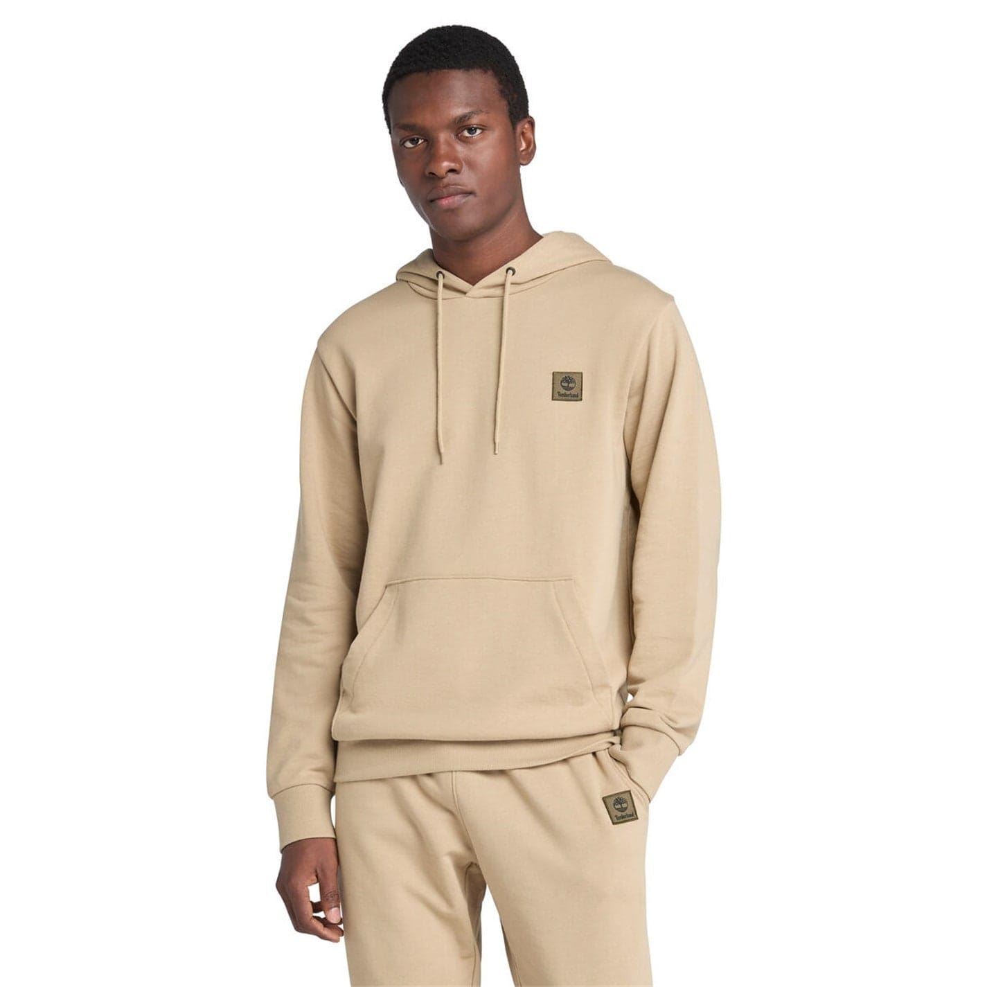 This Timberland top is a casual essential, featuring a hooded design with a drawstring closure. The long sleeves and ribbed cuffs ensure a comfortable fit, while the solid pattern adds a classic touch. Embellished with a badge and logo, this regular fit top is perfect for everyday wear.