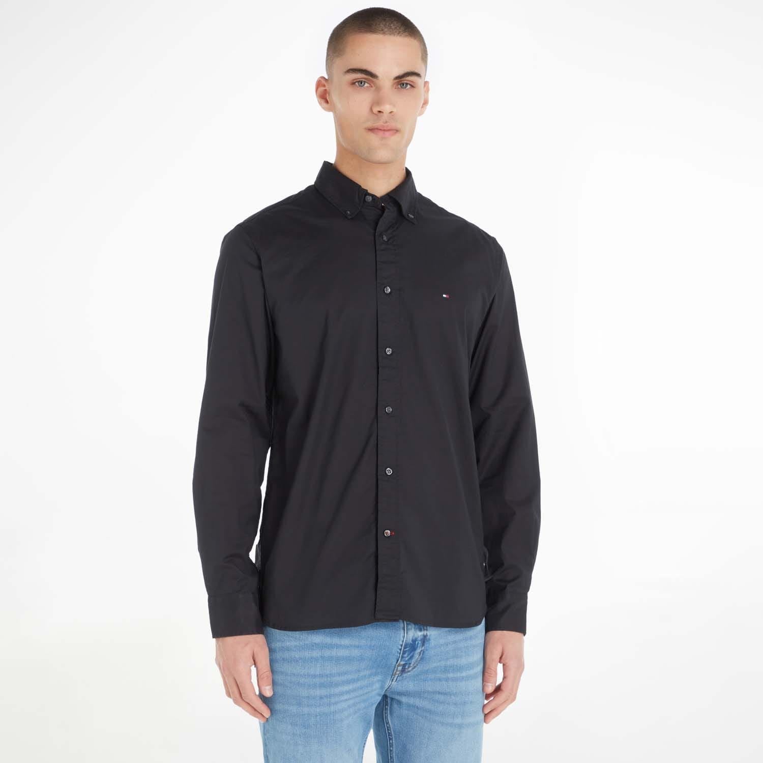 Mens Tommy Hilfiger Core Flex Poplin Shirt in black.