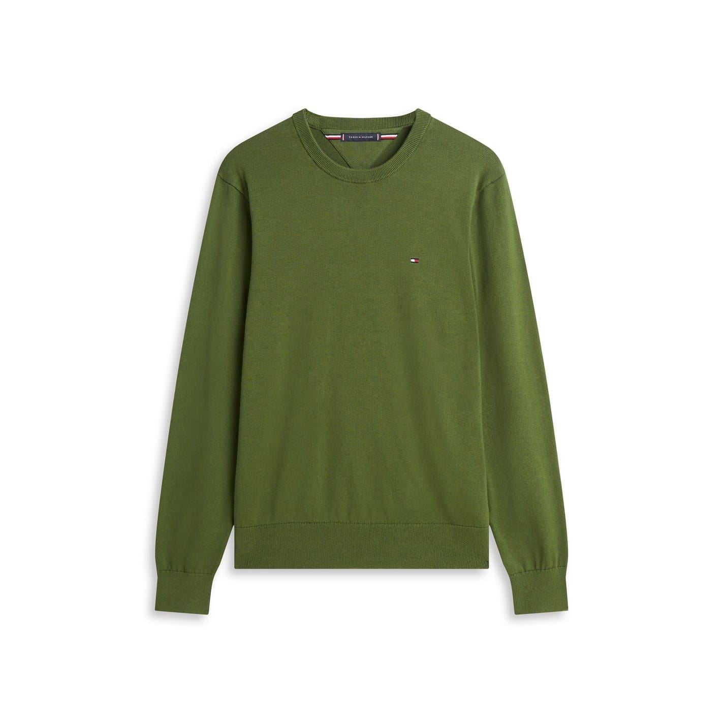 Add to your casual collection with this Crew Neck Jumper from Tommy Hilfiger. Crafted in a soft cotton, this jumper features a classic crew neckline with long sleeves and ribbed trims. The look is finished with the brand's signature logo embroidered to the chest.