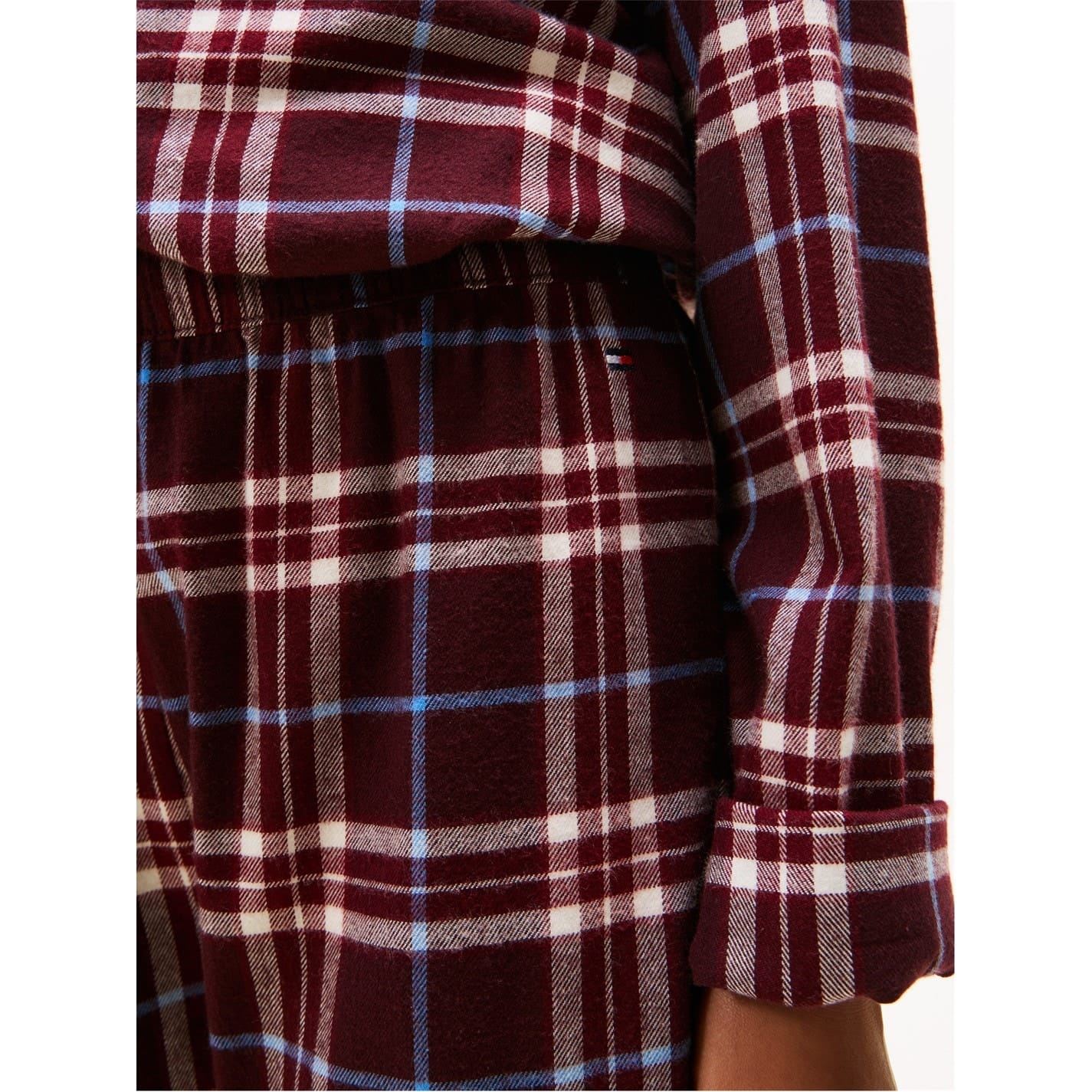 Embrace comfort with Tommy Hilfiger's plaid sleepwear set. This regular fit two-piece pyjama features an elasticated waistband for ease and flexibility. The set includes a top and matching pajama pants, both adorned with a classic plaid pattern, offering a stylish yet relaxed look for your night-time routine.