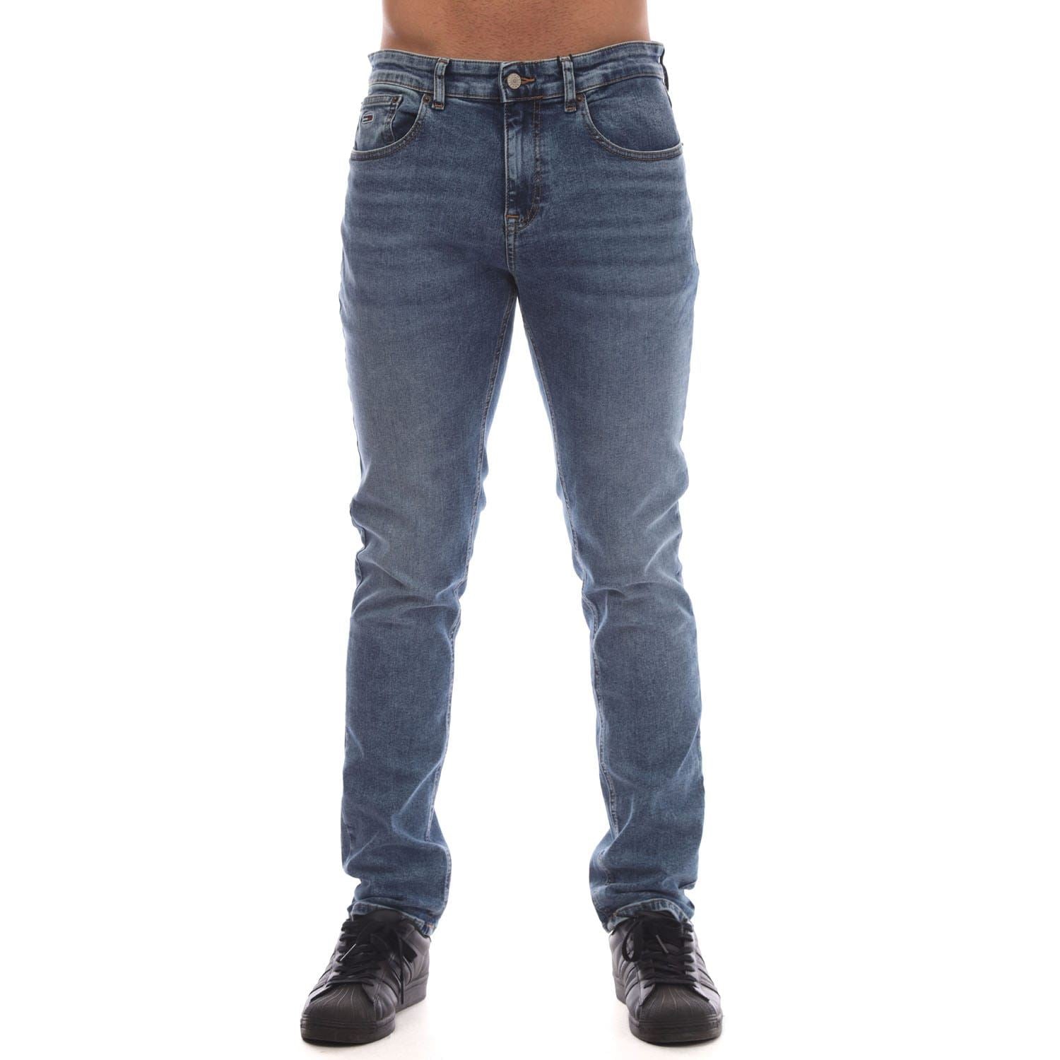 Mens Tommy Hilfiger Scanton Flag Embroidery Slim-Fit Jeans in blue.