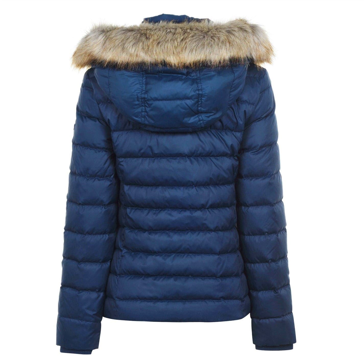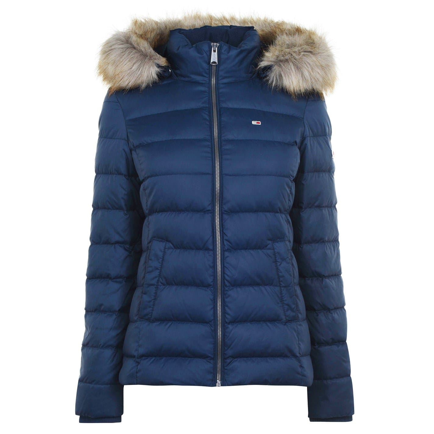 Add to your outerwear collection with the Tommy Jeans Essential Puffer Jacket. Crafted with long sleeves and a full zip closure, this piece features an all over quilted design. Complete with two side pockets and ribbed trims for a comfortable fit, this puffer jacket is finished with Tommy Jeans branding and a fur trim hood. Invest in this piece for the colder months.