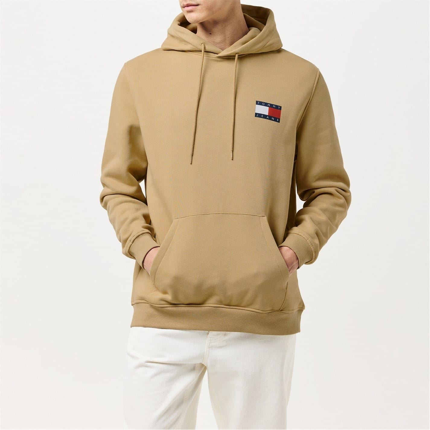 Tommy Jeans' men's Regular Essential Flag Hoodie delivers classic sweatshirt sportswear styling. The comfortable cotton-mix pullover features the brand's flag logo, making it a great staple for casual everyday wear.