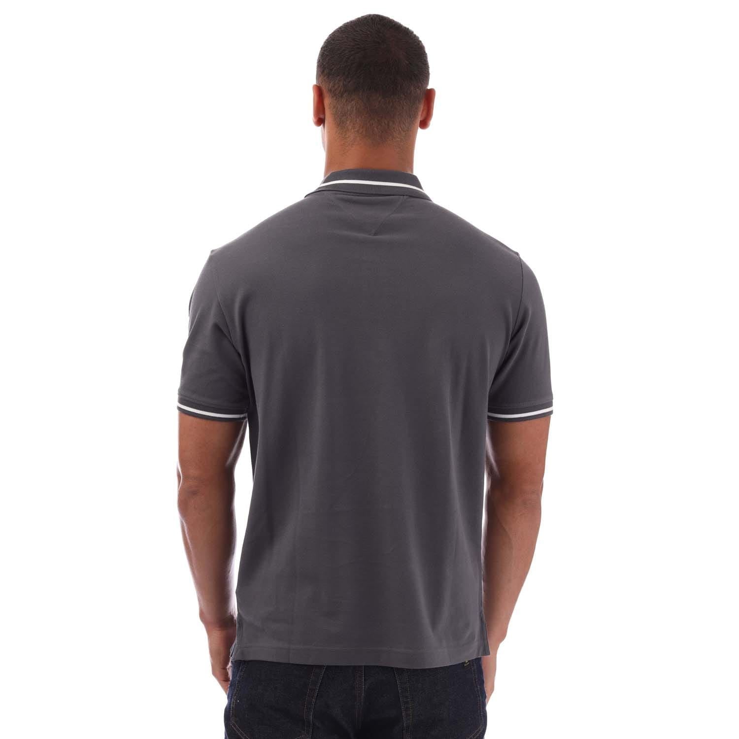 Mens Tommy Jeans Regular Fit Tipped Polo Shirt in washed black.
